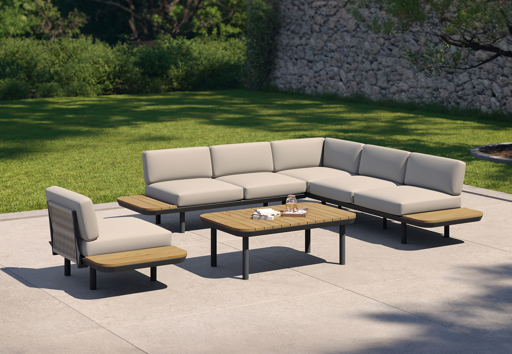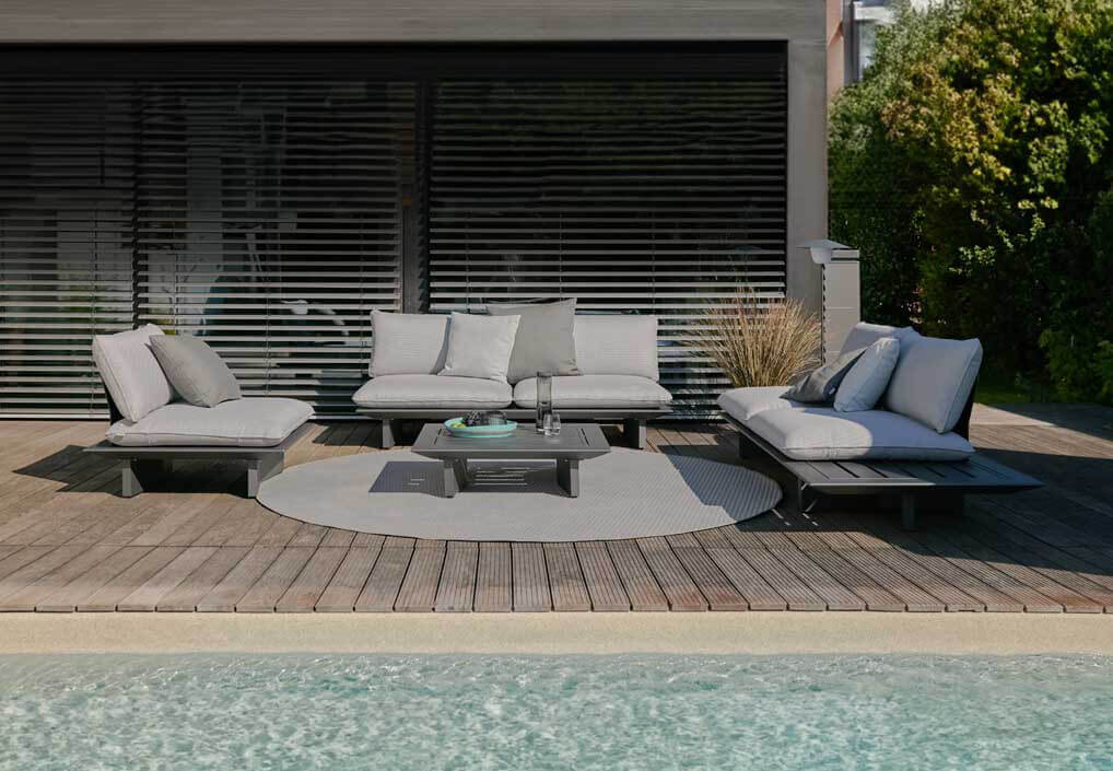 Bonito Lounge-Set Recamiere links Aluminium eisengrau/Rope grey melange inkl. Kissen dunkelgrau