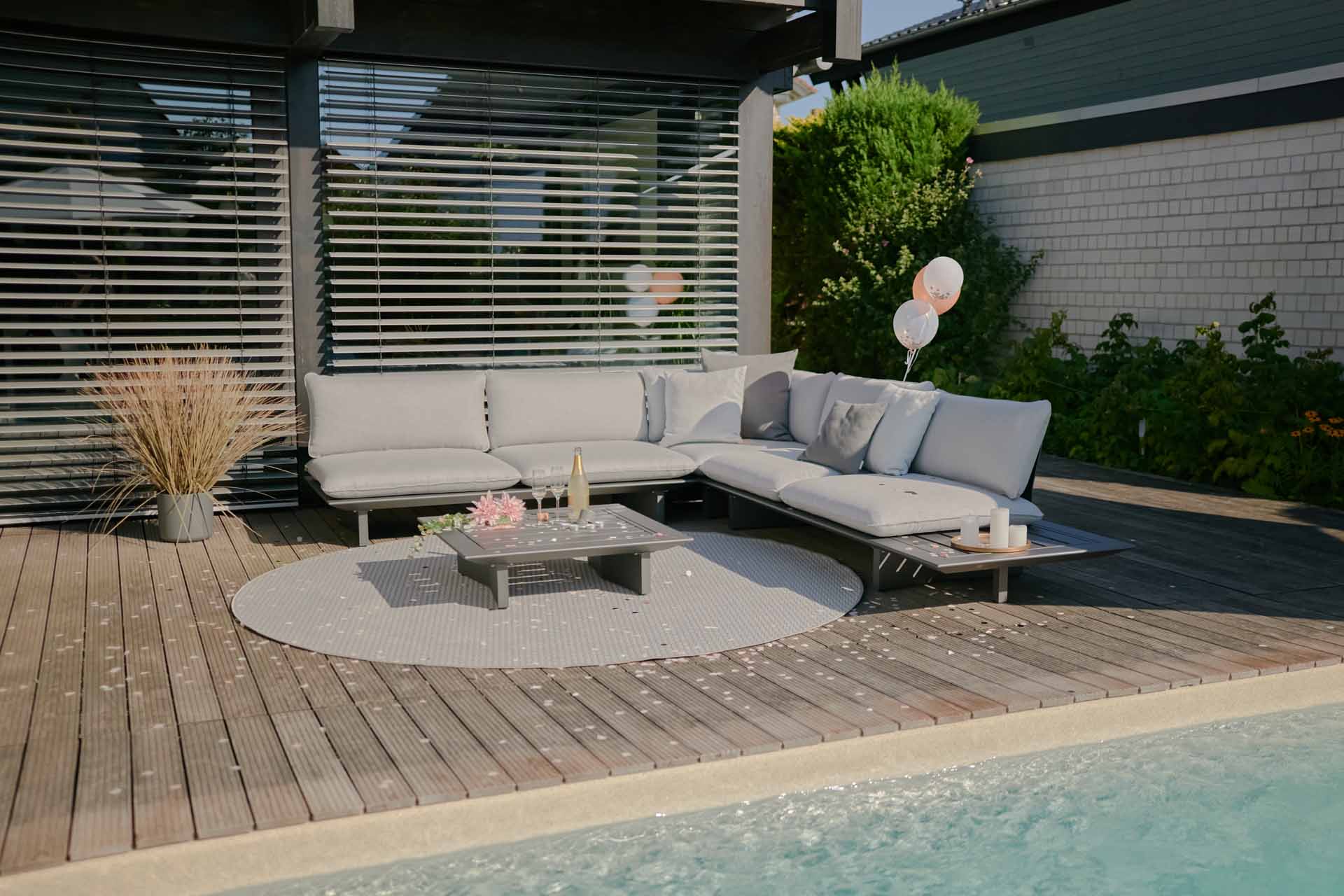 Gartenmöbel aus Aluminium sind geradezu ideal für den Einsatz im Freien geeignet. Das geringe Gewicht, die Wetterbeständigkeit, sowie die außerordentliche Langlebigkeit machen Aluminium zur 1. Wahl bei Gartenmöbeln aus Metall. Damit das Material nicht „ausblüht“ sind unsere Aluminium-Gartenmöbel mit hochwertigen Pulverbeschichtungen versehen. Viele Artikel sind in verschiedenen Farben erhältlich. Fast alle Aluminium-Gartenmöbel aus unserem Sortiment werden in aufwendiger Handarbeit gefertigt. Die Schweißnähte werden geschliffen und poliert, sodass Verbindungen anmuten als wären sie „aus einem Guss“.