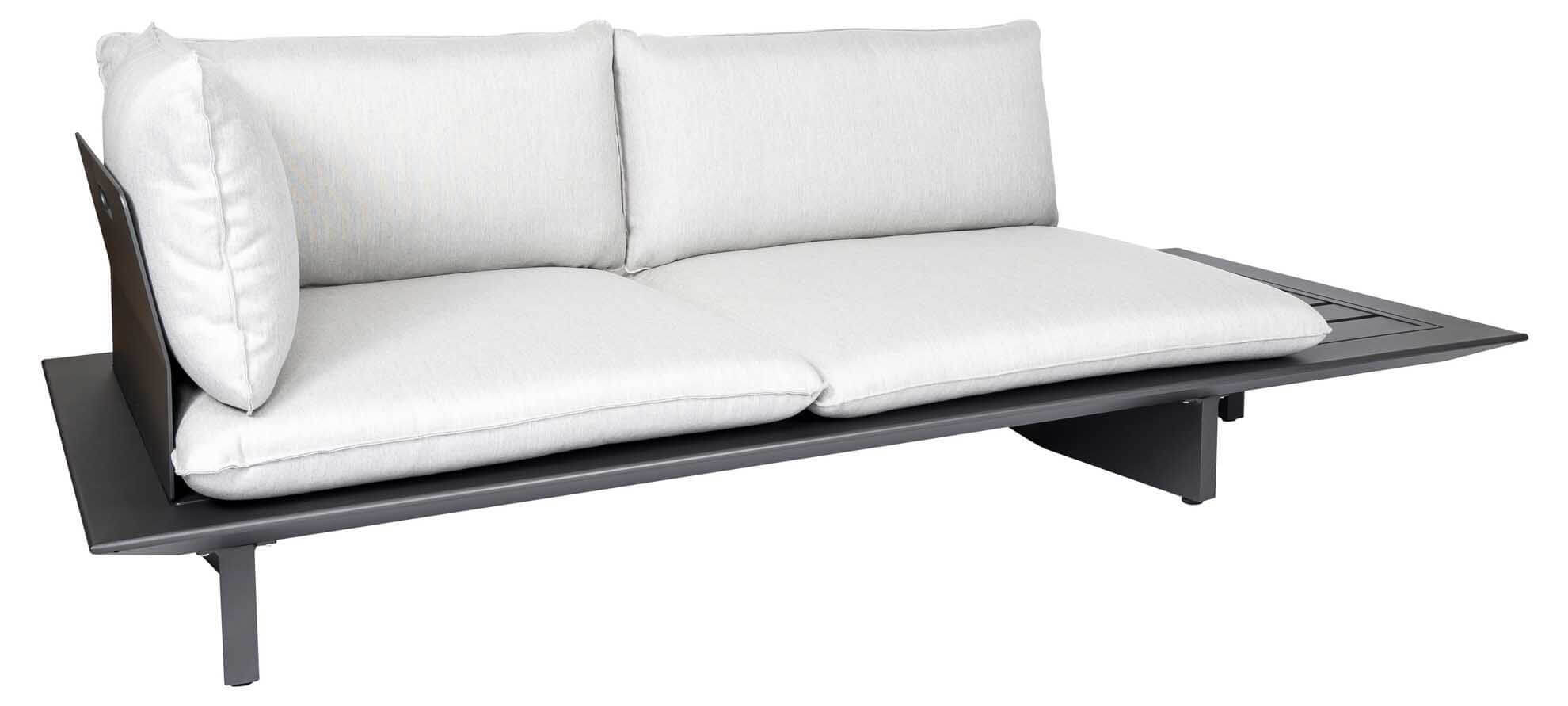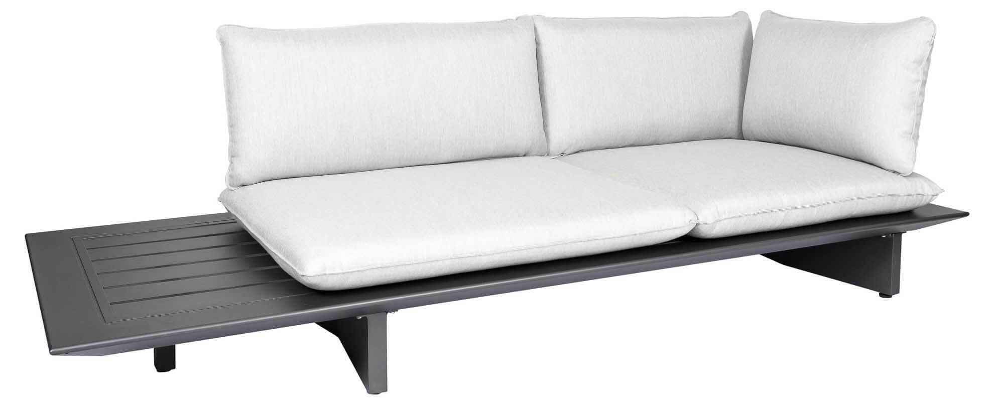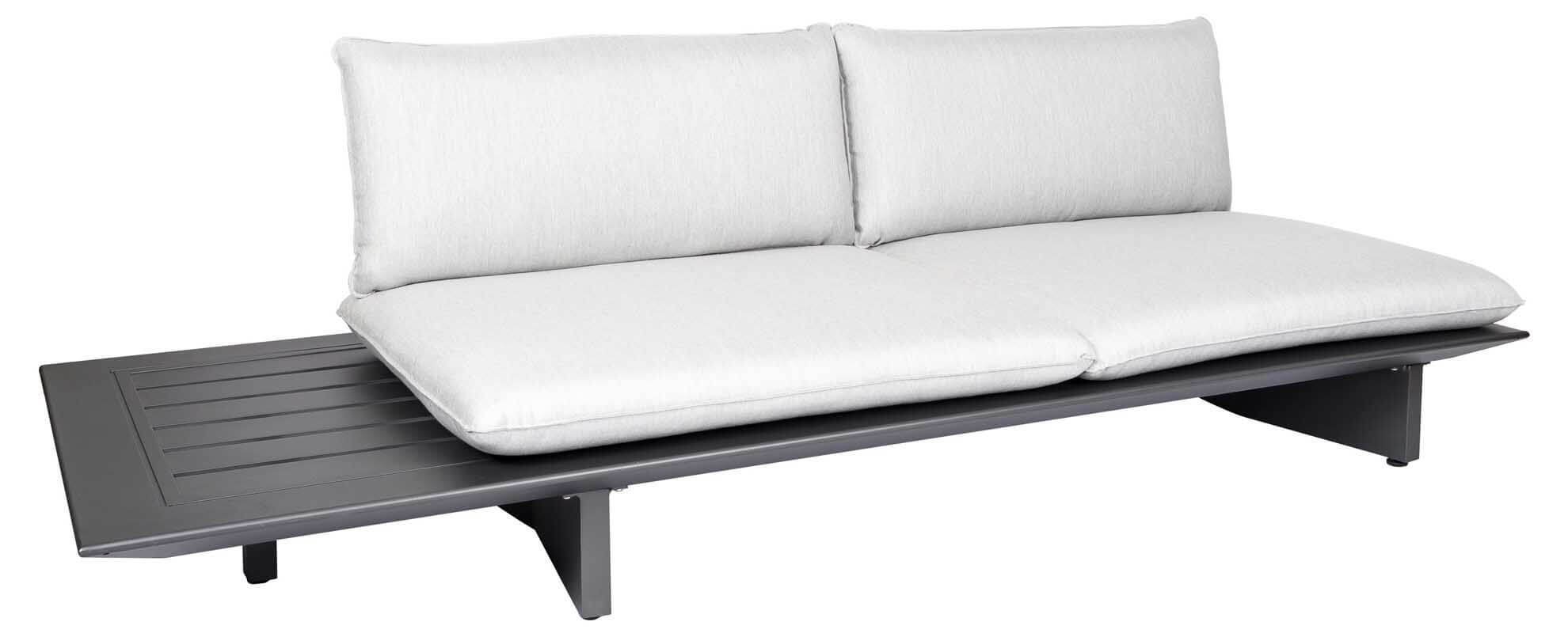 Arbon Lounge 2-Sitzer Basismodul mit seitlicher Ablage. Als Liege, Sofa oder Ecksofa nutzbar (Rückenlehnen gegen Aufpreis). Eisengrau matt pulverbeschichtet. Die Rückenlehnen passen an alle Seiten, daher kann der seitliche Kaffeetisch, je nach Wunsch sowohl an der rechten, wie auch an der linken Seite positioniert werden.