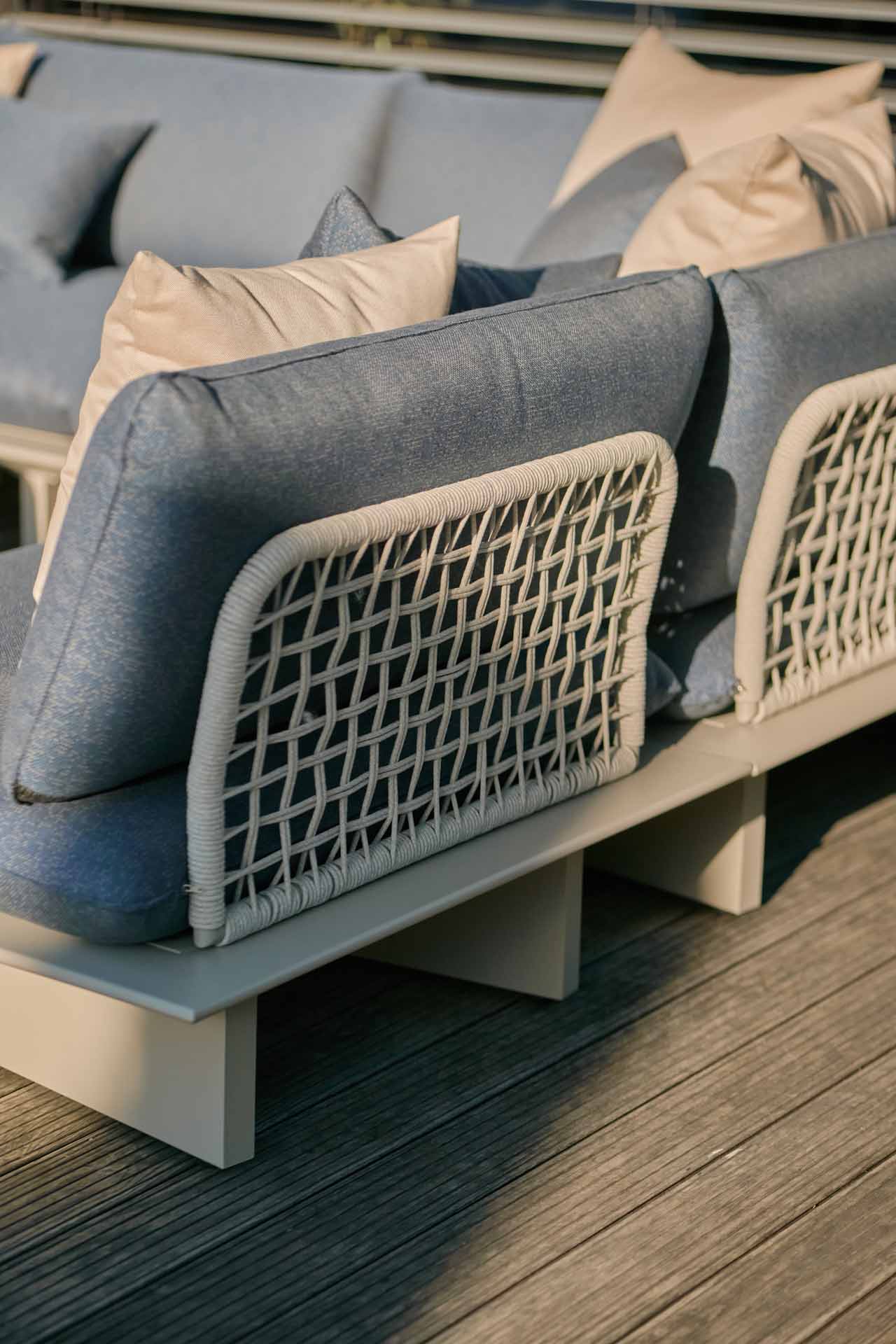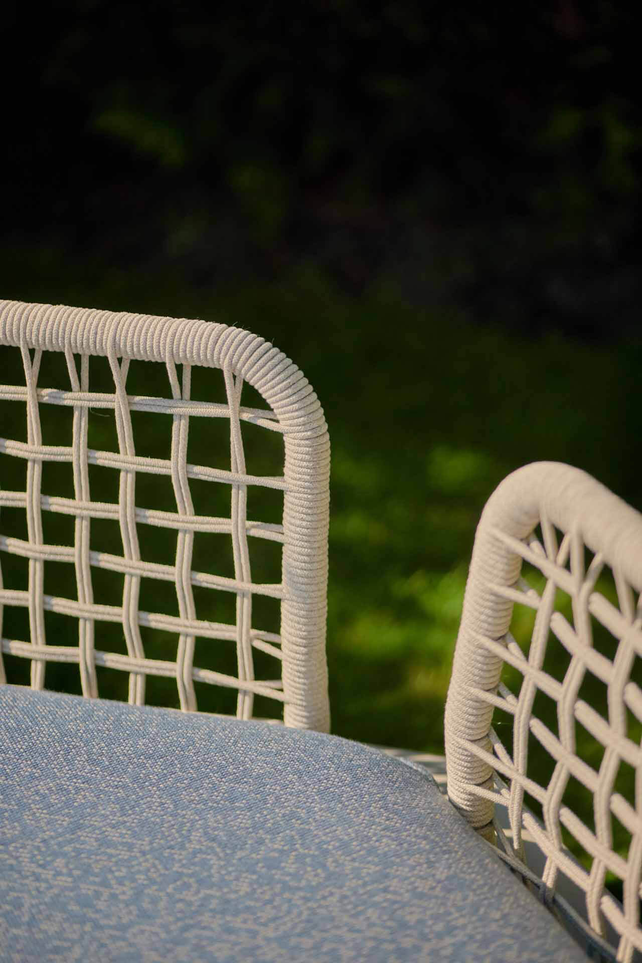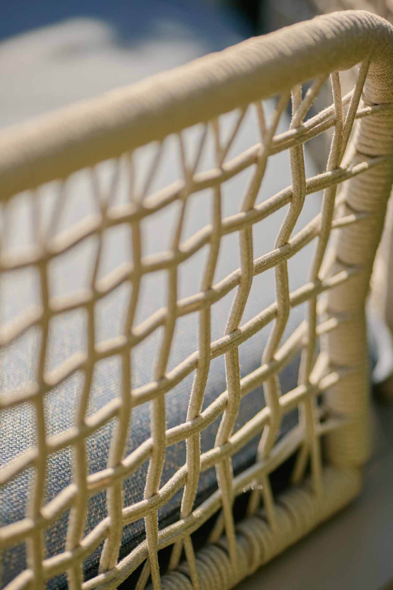 Seilmöbel - Qualitätsfasern mit natürlichem Aussehen. Die Polyolefinfaser hat ein natürliches Aussehen, ist jedoch pflegeleicht und unempfindlich gegen die Kräfte von Mutter Natur. Das Seil ist sowohl für den Innen- als auch für den Außenbereich geeignet. Wie keine andere synthetische oder natürliche Faser ist sie resistent gegen Pilze, Bakterien, Sonnenlicht, Feuchtigkeit, Chlor, Lebensmittelflecken und Schweiß. Es ist extrem leicht, waschbar, umweltfreundlich und vollständig recycelbar. Kombinieren Sie die Sitze und Stühle aus Rope-Geflecht mit maßgeschneiderten, wetterbeständigen Kissen.