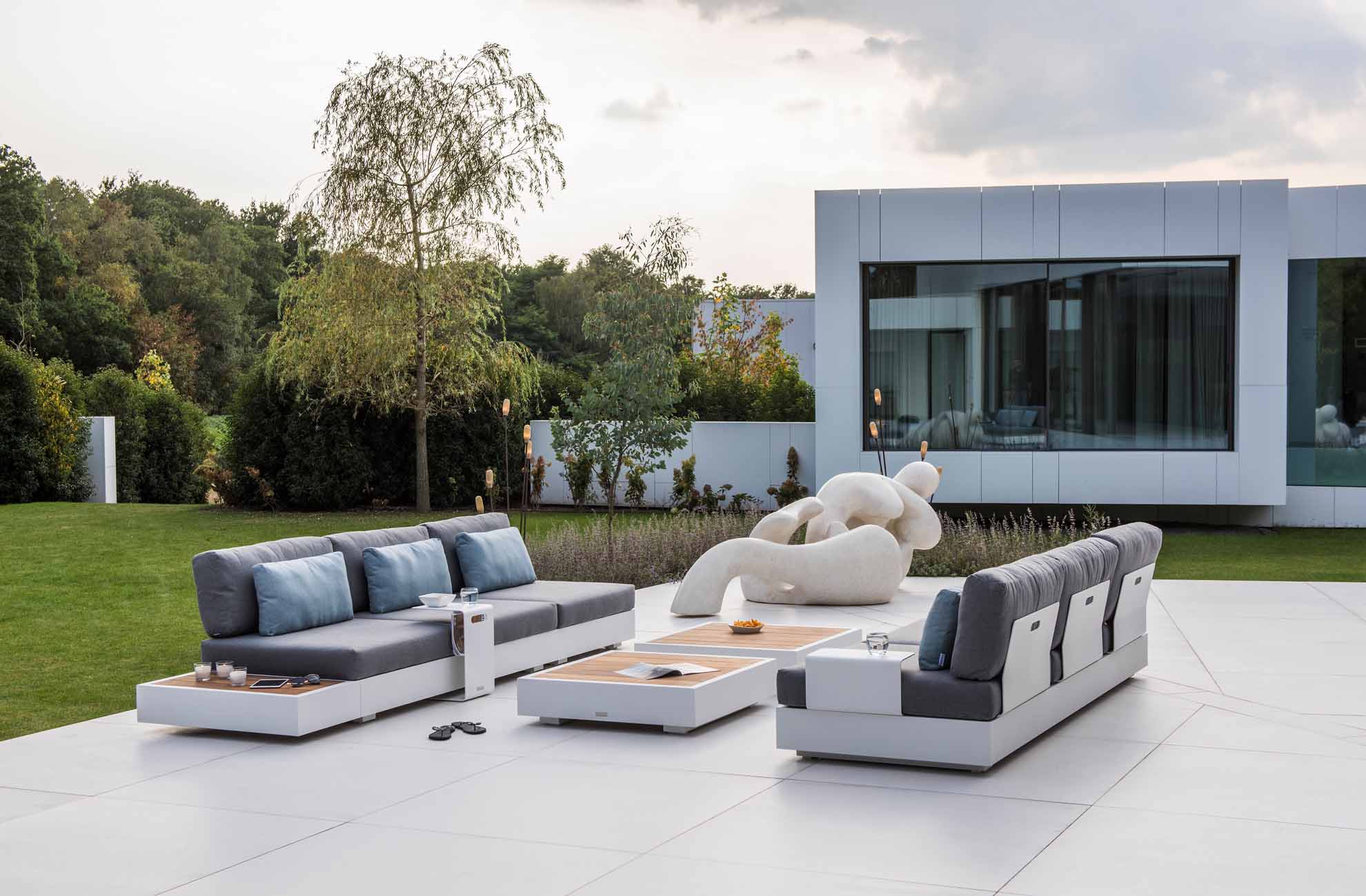Gartenmöbel aus Aluminium sind geradezu ideal für den Einsatz im Freien geeignet. Das geringe Gewicht, die Wetterbeständigkeit, sowie die außerordentliche Langlebigkeit machen Aluminium zur 1. Wahl bei Gartenmöbeln aus Metall. Damit das Material nicht „ausblüht“ sind unsere Aluminium-Gartenmöbel mit hochwertigen Pulverbeschichtungen versehen. Viele Artikel sind in verschiedenen Farben erhältlich. Fast alle Aluminium-Gartenmöbel aus unserem Sortiment werden in aufwendiger Handarbeit gefertigt. Die Schweißnähte werden geschliffen und poliert, sodass Verbindungen anmuten als wären sie „aus einem Guss“.