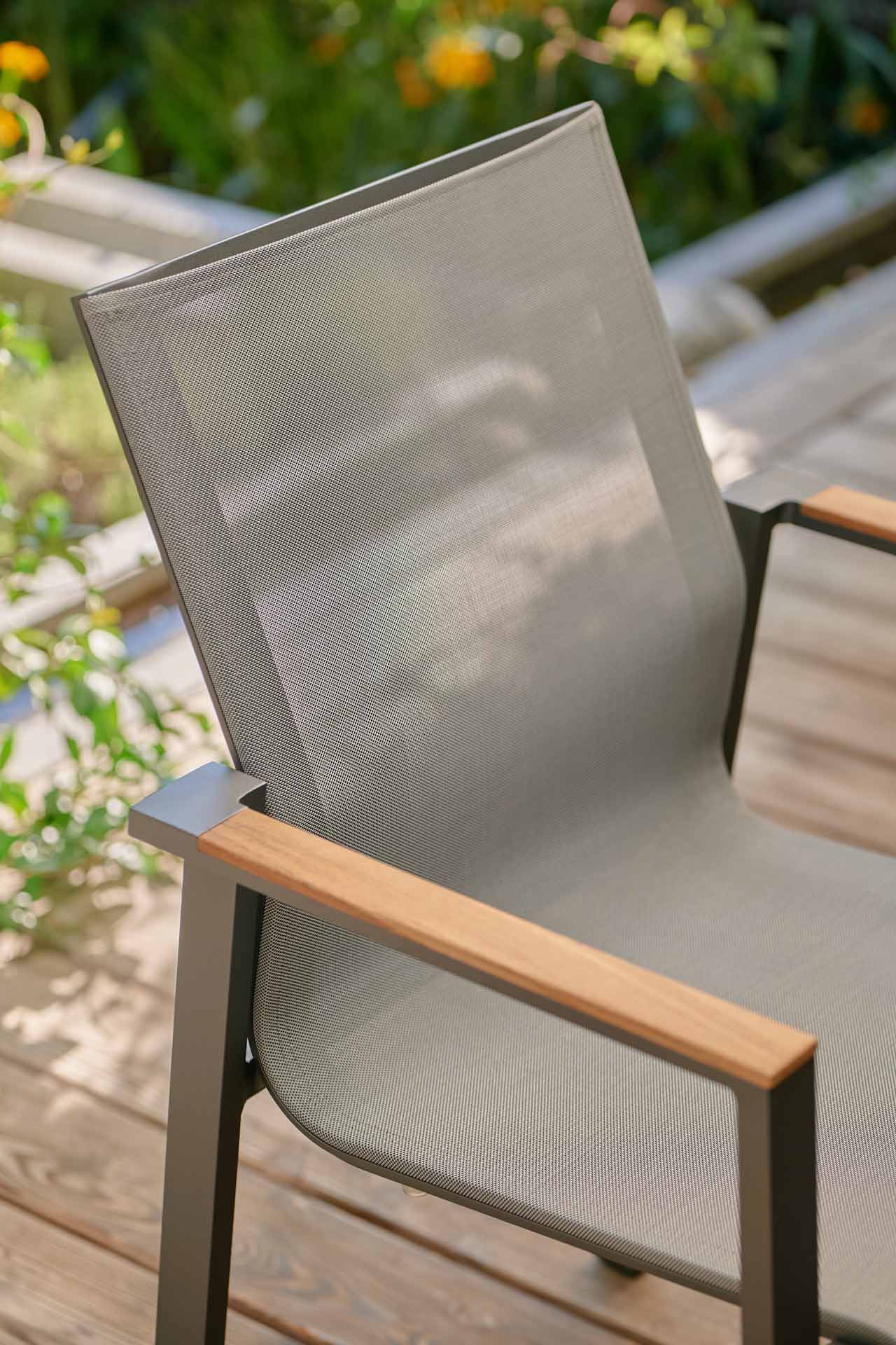 Produktinformationen "Beja Stapelsessel eisengrau/silbergrau, Armlehne Teak"