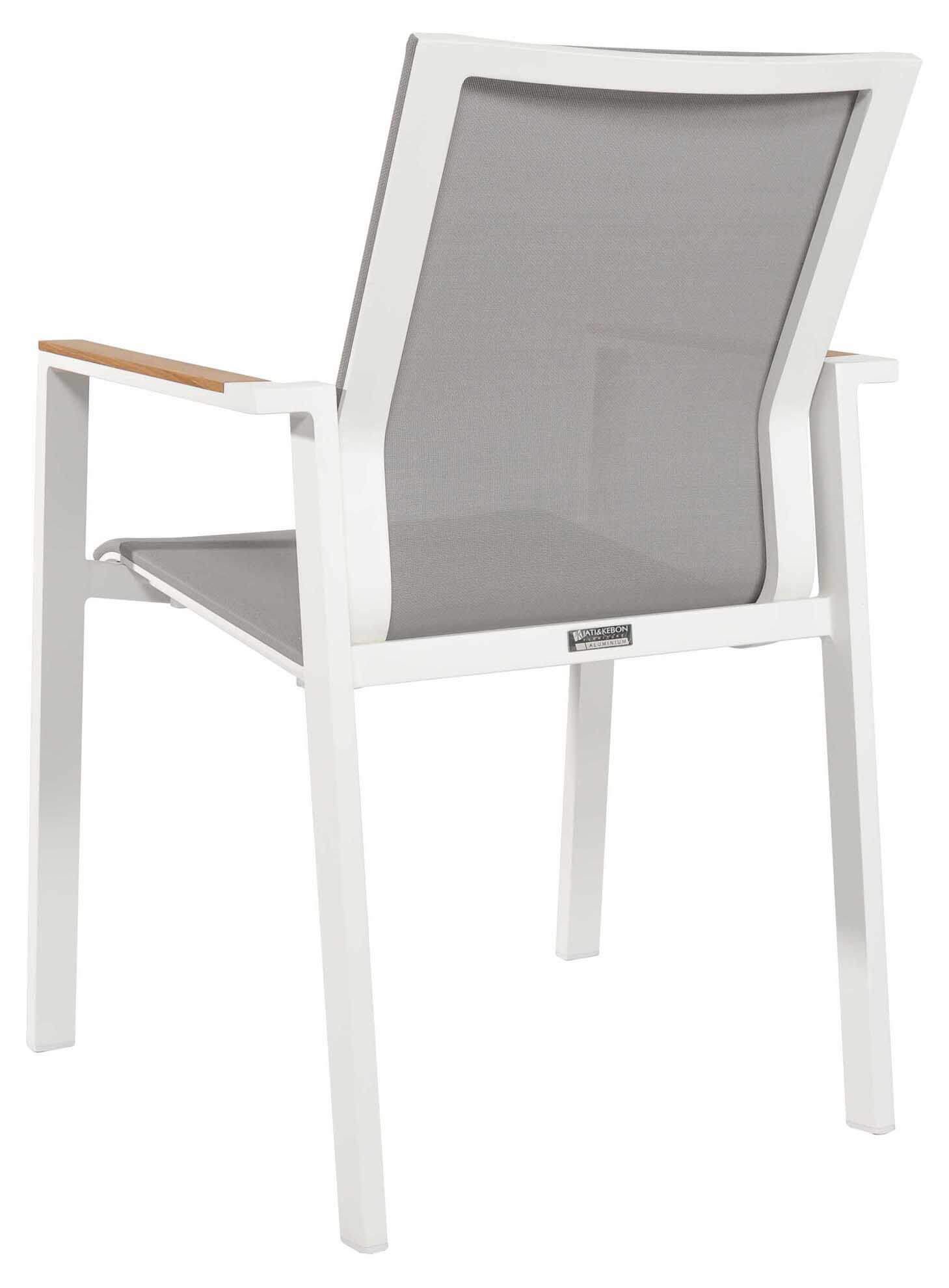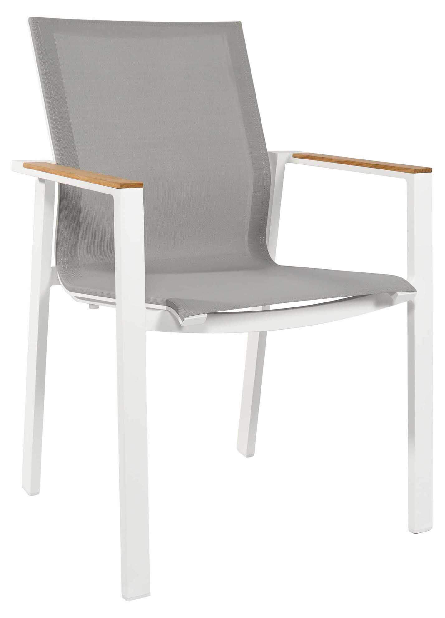 Beja Stapelsessel weiß/hellgrau, Armlehne Teak