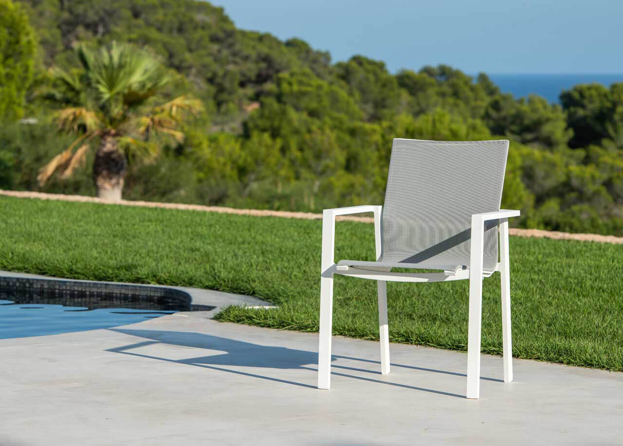 Textilen-Gewebe werden für die Sitz- und Rückenbespannung zahlreicher Gartenmöbel verwendet. Dieses Gewebe wirkt leicht und transparent und ist viel komfortabler als z.B. massive Latten. Außerdem trägt es auch dazu bei, dass die Möbel leichter und handlicher sind. Textilen-Bespannungen haben eine sehr hohe Tragkraft. Sie sind robust, UV-beständig und pflegeleicht.