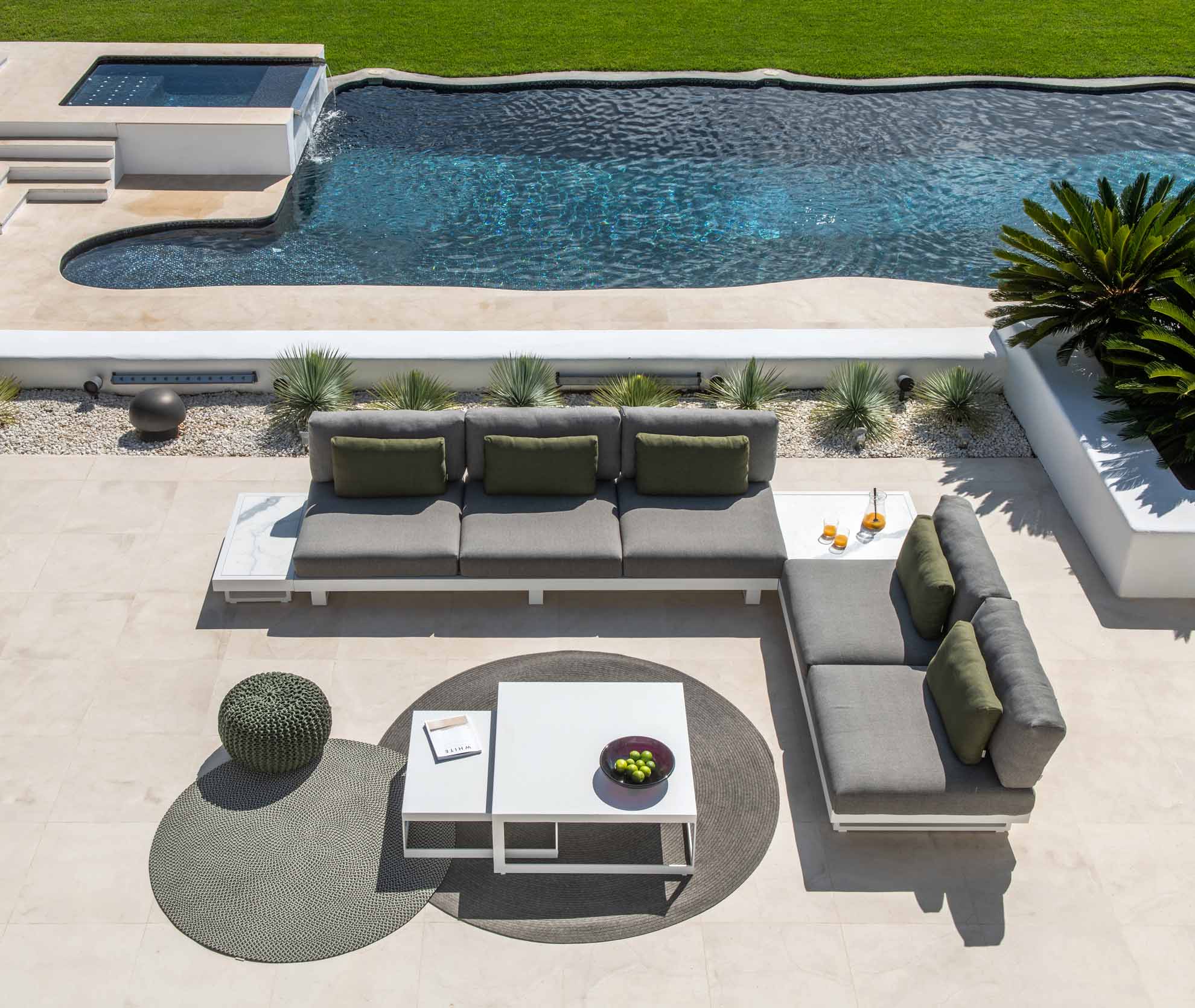 Gartenmöbel aus Aluminium sind geradezu ideal für den Einsatz im Freien geeignet. Das geringe Gewicht, die Wetterbeständigkeit, sowie die außerordentliche Langlebigkeit machen Aluminium zur 1. Wahl bei Gartenmöbeln aus Metall. Damit das Material nicht „ausblüht“ sind unsere Aluminium-Gartenmöbel mit hochwertigen Pulverbeschichtungen versehen. Viele Artikel sind in verschiedenen Farben erhältlich. Fast alle Aluminium-Gartenmöbel aus unserem Sortiment werden in aufwendiger Handarbeit gefertigt. Die Schweißnähte werden geschliffen und poliert, sodass Verbindungen anmuten als wären sie „aus einem Guss“.