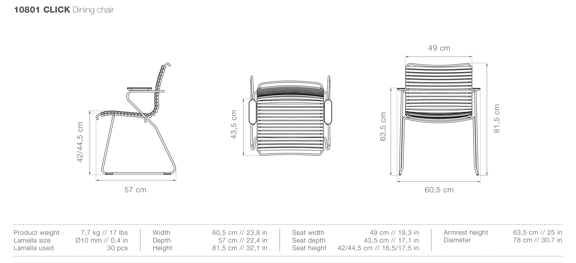Der filigran wirkende CLICK Stapelsessel von HOUE hat ein stabiles Stahlgestell. Mit den ergonomisch geformten Kunststofflamellen bietet dieser Stuhl ein angenehmes, komfortables Sitzgefühl. Die Armlehnen aus Bambus mit der natürlichen Haptik sorgen für einen zusätzlichen Wohlfühlfaktor. Alle Lamellen sind austauschbar und können je nach Ihrem persönlichen Geschmack farblich gewechselt oder gemischt werden. Mit den CLICK Stapelsesseln wird jeder Esstisch zu einem aussergewöhnlichen Arrangement. Gestell: Stahl, pulverbeschichtet grau Lamellenfarbe: 83 multi 1 Artikel Nr.: 10801-8318