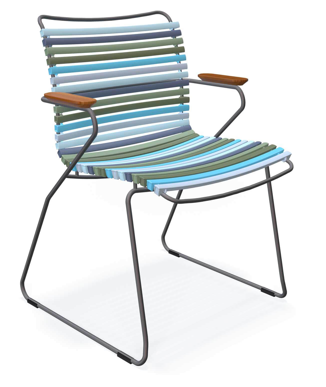 Der filigran wirkende CLICK Stapelsessel von HOUE hat ein stabiles Stahlgestell. Mit den ergonomisch geformten Kunststofflamellen bietet dieser Stuhl ein angenehmes, komfortables Sitzgefühl. Die Armlehnen aus Bambus mit der natürlichen Haptik sorgen für einen zusätzlichen Wohlfühlfaktor. Alle Lamellen sind austauschbar und können je nach Ihrem persönlichen Geschmack farblich gewechselt oder gemischt werden. Mit den CLICK Stapelsesseln wird jeder Esstisch zu einem aussergewöhnlichen Arrangement. Gestell: Stahl, pulverbeschichtet grau Lamellenfarbe: 83 multi 1 Artikel Nr.: 10801-8318