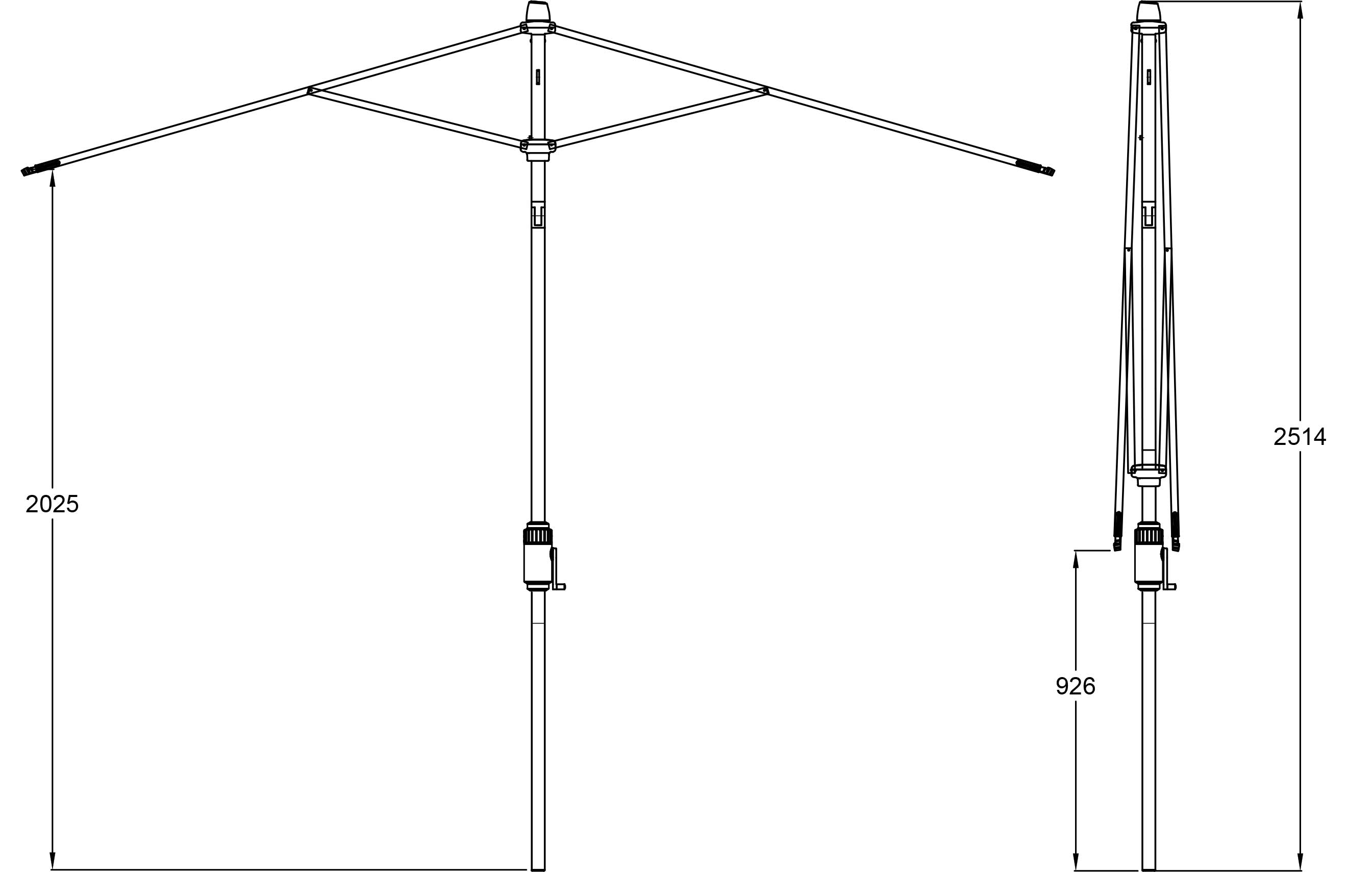 UNO: eloxirtes Aluminium, Streben 14×20 mm, selbstspannende Strebenenden für ein dauerhaft straffes Schirmdach.