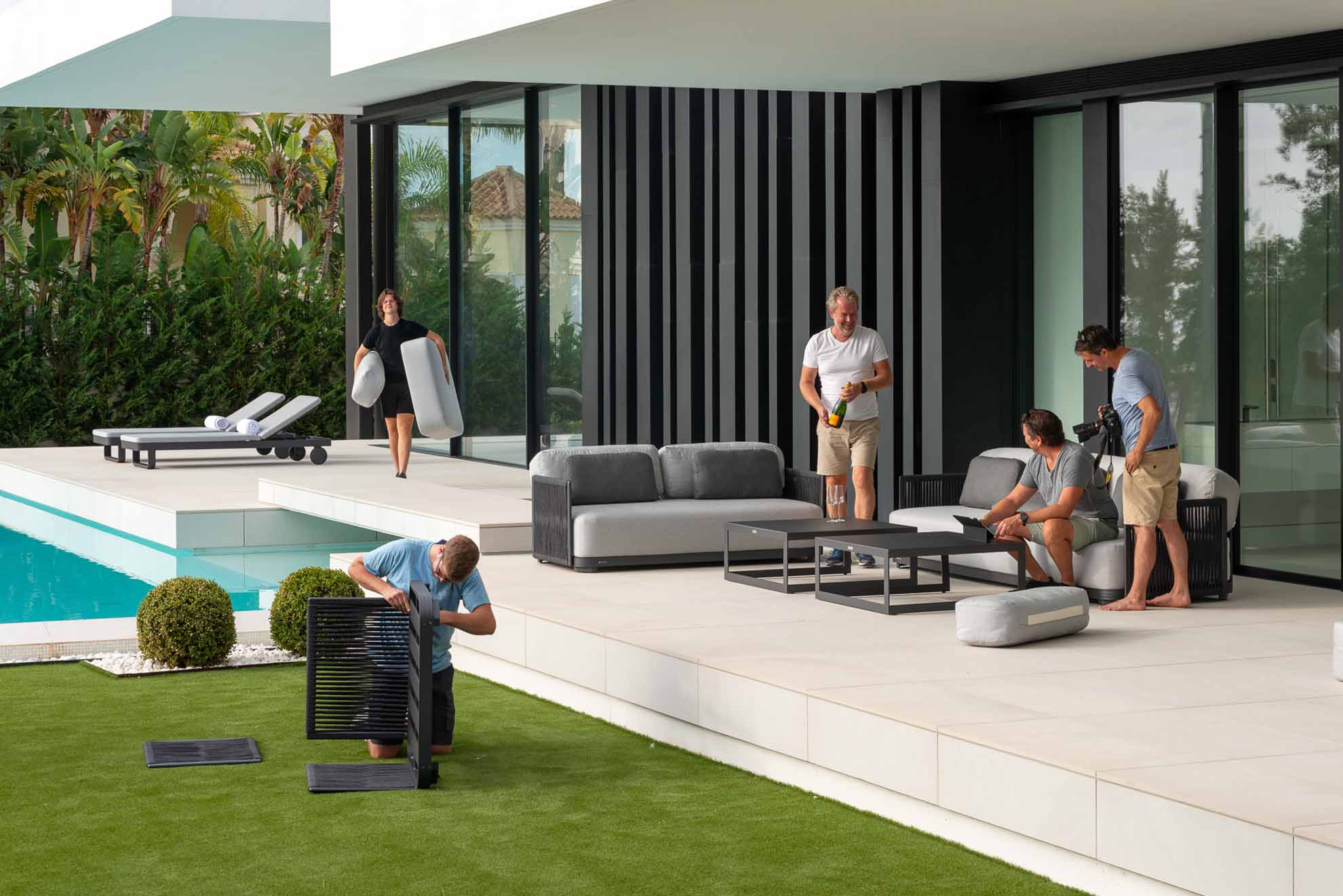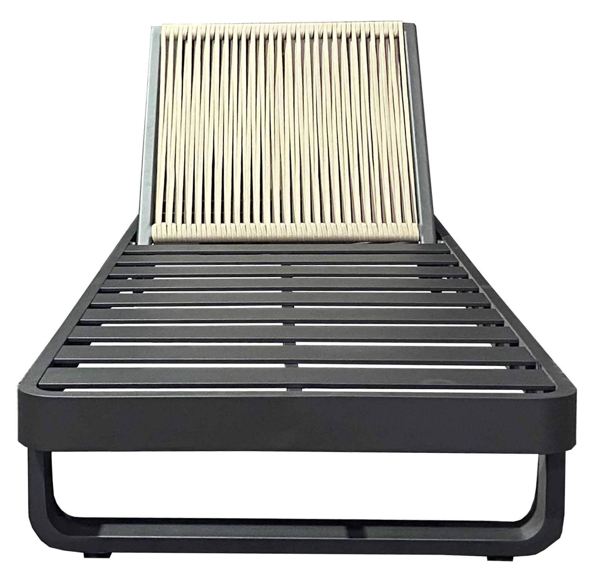 Mit Durbuy stellt Jati&Kebon eine neu designte Sonnenliege vor - Die Liegefläche besteht aus Aluminium und das Rückenteil aus flexiblem, weichen Rope-Geflecht. Der Rahmen besteht aus Aluminium-Rechteckrohr. So bleibt das Rückenteil sehr bequem und die Liegefläche mit der größten Belastung ist gerade und kann daher nicht durchbiegen. Die maßgefertigten, weichen Kissenauflagen sind separat als Zubehör erhältlich.
