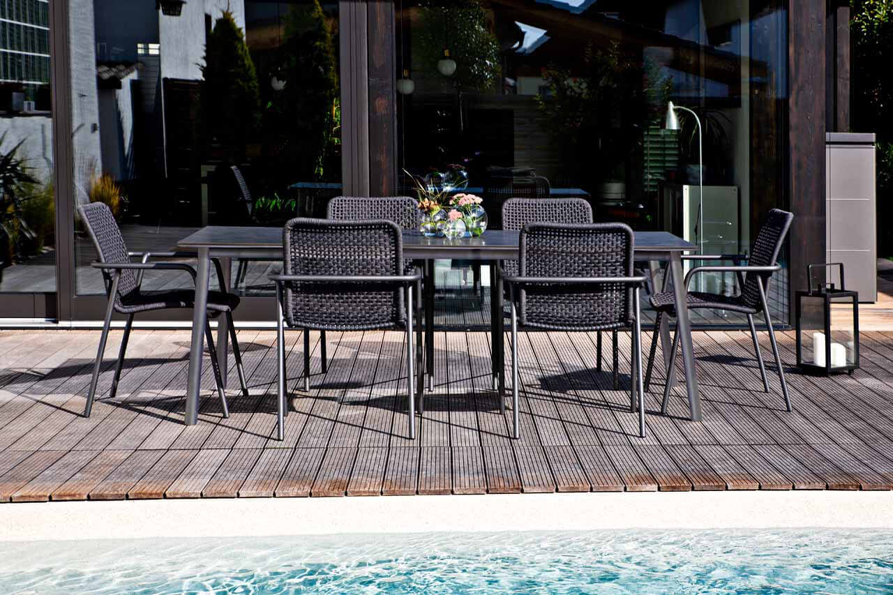 Gartenmöbel aus Aluminium sind geradezu ideal für den Einsatz im Freien geeignet. Das geringe Gewicht, die Wetterbeständigkeit, sowie die außerordentliche Langlebigkeit machen Aluminium zur 1. Wahl bei Gartenmöbeln aus Metall. Damit das Material nicht „ausblüht“ sind unsere Aluminium-Gartenmöbel mit hochwertigen Pulverbeschichtungen versehen. Viele Artikel sind in verschiedenen Farben erhältlich. Fast alle Aluminium-Gartenmöbel aus unserem Sortiment werden in aufwendiger Handarbeit gefertigt. Die Schweißnähte werden geschliffen und poliert, sodass Verbindungen anmuten als wären sie „aus einem Guss“.