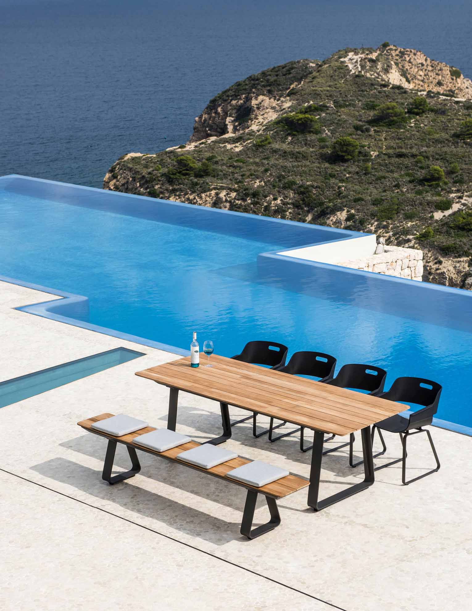 Das Elko Bankgestell in Aluminium eisengrau von Jati&Kebon hat die Maße 240x36 cm und ist kombinierbar mit einer Teakholz Sitzfläche aus unserem Zubehör. Eine Gartenbank ohne Rückenlehne ist minimalistisch und kann von beiden Seiten benutzt werden. Diese Bank passt harmonisch zu den Elko Tischen, kann aber ebenso als Sitzgelegenheit für viele Anlässe in Ihrem Garten platziert werden.