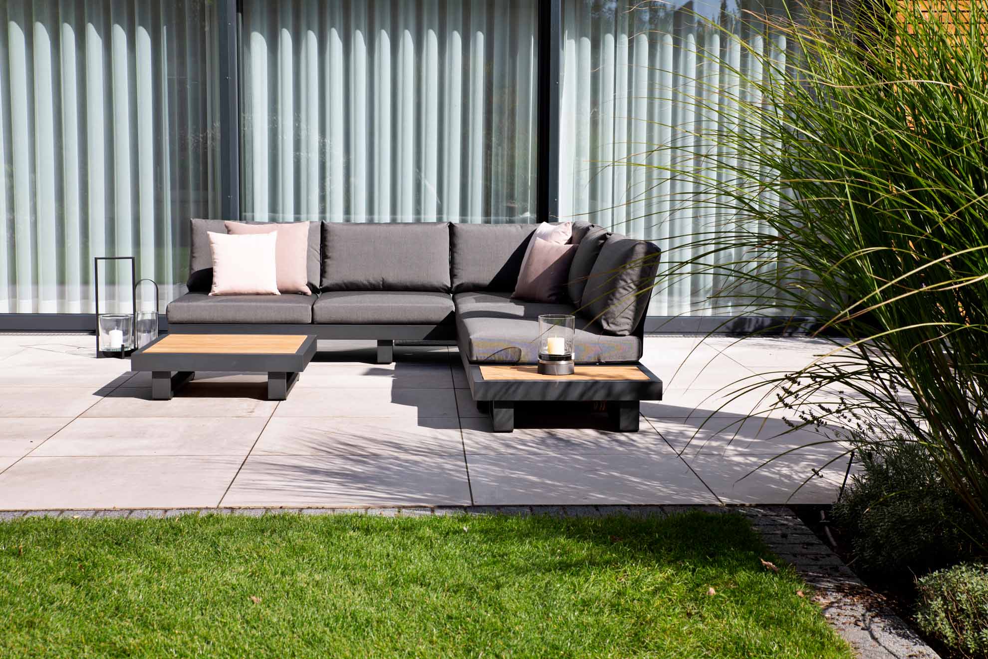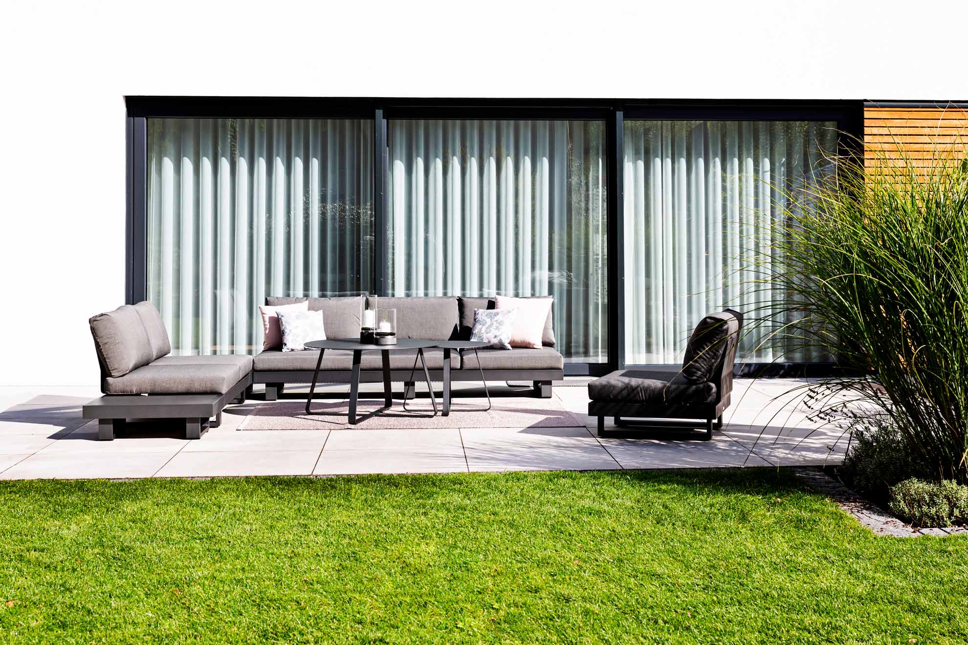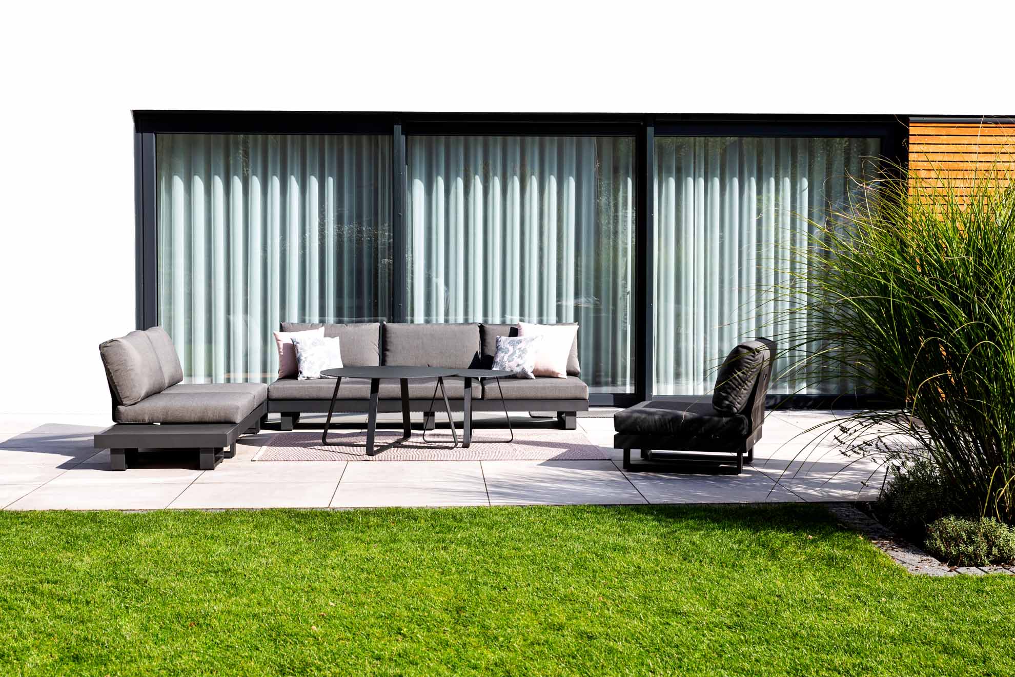 Rückenlehne von Jati & Kebon . Passend zu Dreisitzer, Zweisitzer und Einzelsitzplatz aus der Fano XS Kollektion Material: Aluminium Farbe: Pulverbeschichtet, eisengrau Maße: H 38cm B 56cm