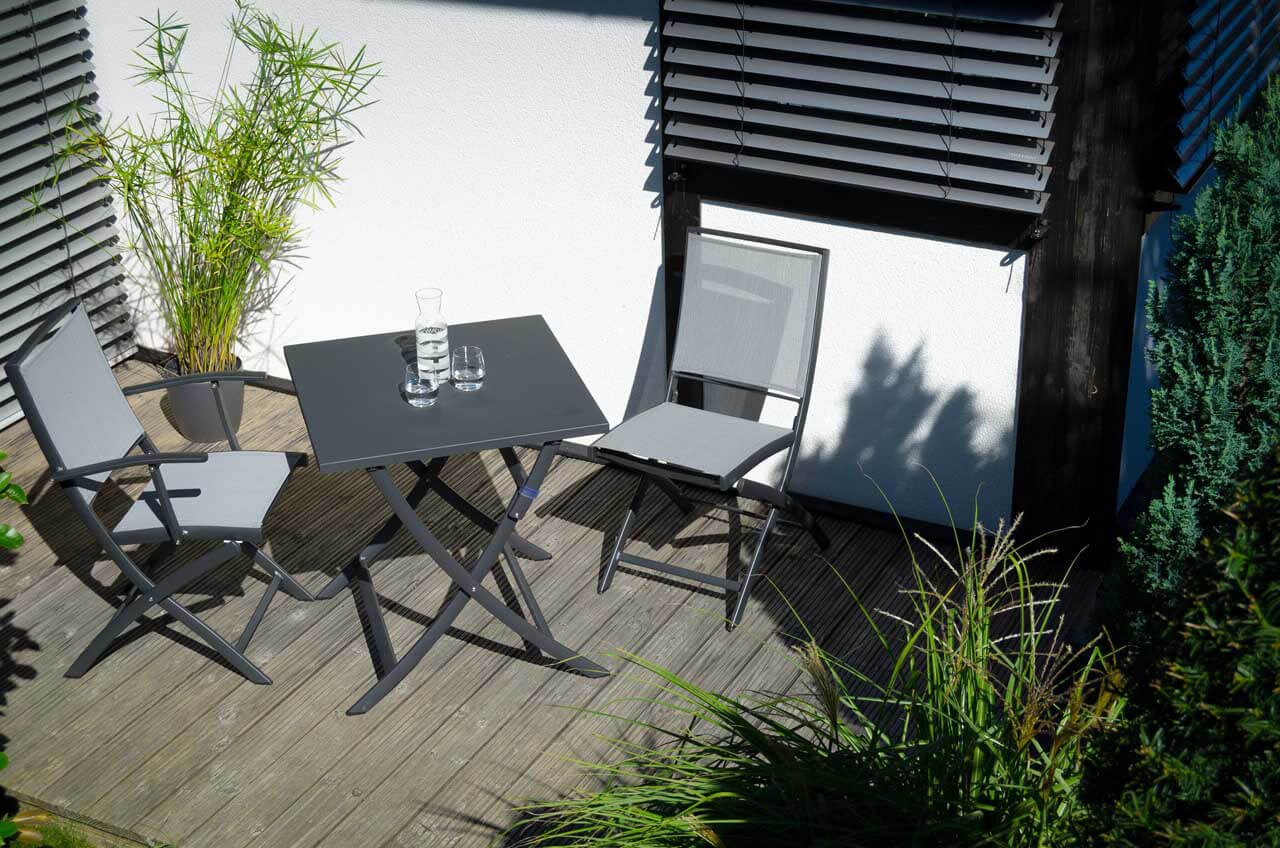 Gartenmöbel aus Aluminium sind geradezu ideal für den Einsatz im Freien geeignet. Das geringe Gewicht, die Wetterbeständigkeit, sowie die außerordentliche Langlebigkeit machen Aluminium zur 1. Wahl bei Gartenmöbeln aus Metall. Damit das Material nicht „ausblüht“ sind unsere Aluminium-Gartenmöbel mit hochwertigen Pulverbeschichtungen versehen. Viele Artikel sind in verschiedenen Farben erhältlich. Fast alle Aluminium-Gartenmöbel aus unserem Sortiment werden in aufwendiger Handarbeit gefertigt. Die Schweißnähte werden geschliffen und poliert, sodass Verbindungen anmuten als wären sie „aus einem Guss“.
