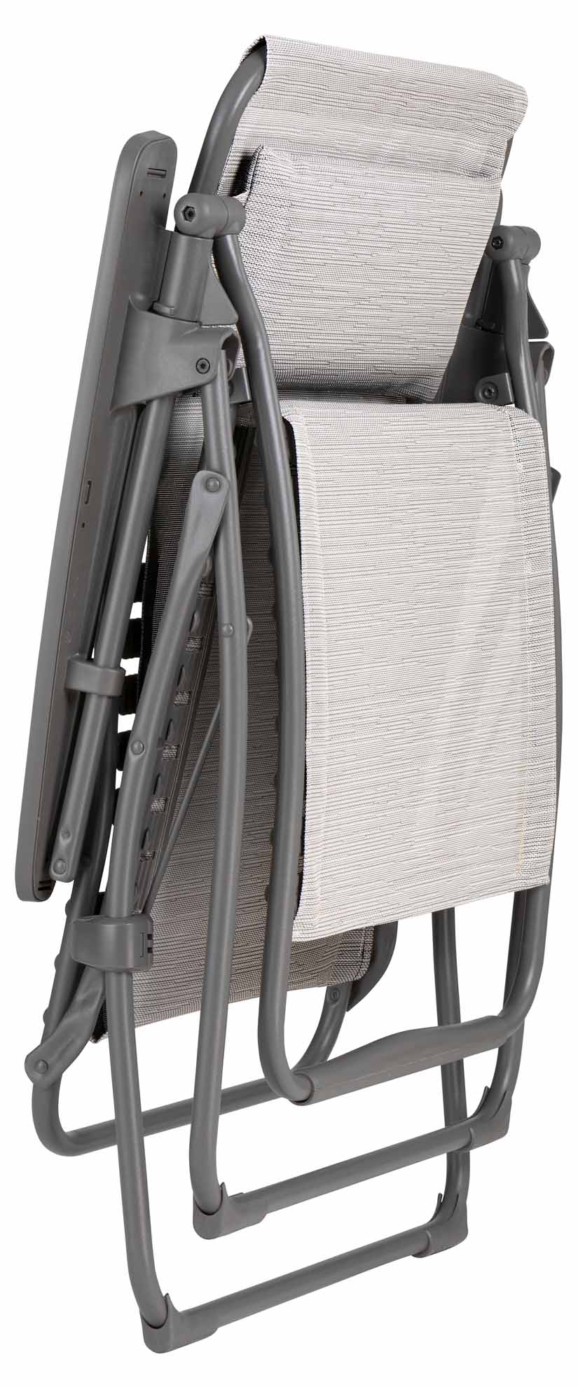 Futura Relaxsessel von Lafuma ist der Einstieg in die Welt des Komforts! Ausgezeichnetes Preis-Leistungs-Verhältnis, fester Sitzkomfort durch Clip-Befestigungen. Leicht und klappbar, einfach und praktisch und er bietet die Zero Gravity-Position für optimales Wohlbefinden. Batyline® Bespannung: Ideal für den Außenbereich durch ausgezeichnete UV-Beständigkeit, ultraschnelle Trocknung und sehr einfache Pflege mit Seifenwasser. Gestell pulverbeschichtetes Stahlrohr titan, Bespannung Batyline® duo galet.