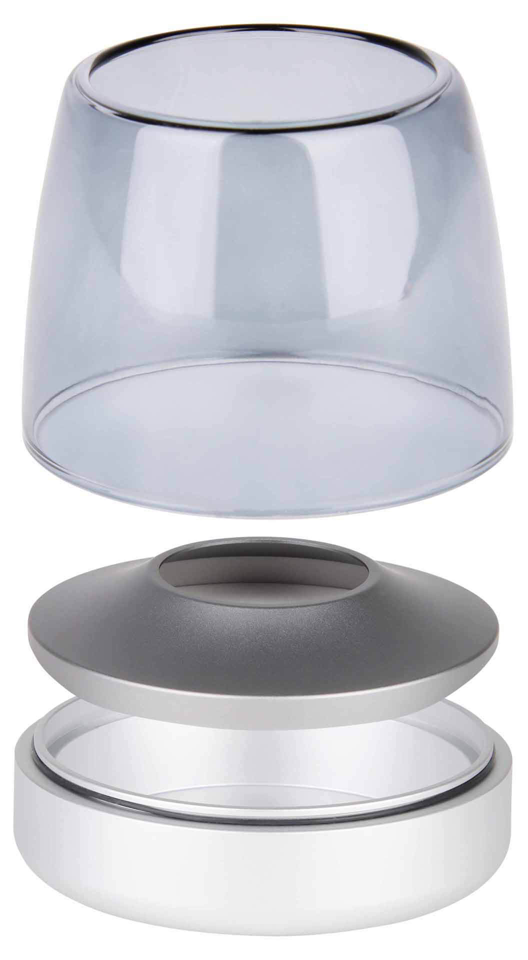 Das dänische Design der Glow 10 Kerzenhalter von Kooduu strahlt Eleganz und Geschmack aus und kann zu allen Einrichtungsstilen verwendet werden. Mit der wiederaufladbaren SHINE LED-Kerze (nicht im Lieferumfang enthalten) gestaltet sich ein gemütliches Ambiente ohne offenes Feuer. Die Brenndauer je Aufladung beträgt mehr als 100 Stunden. Der kleine Kerzenhalter kann daher an allen Orten sorglos benutzt werden. Das luxuriöse Aussehen erhält Glow10 durch ein gebürstetetes Aluminiumgehäuse in der Farbe frostet silver und einem handgefertigtem Glasaufsatz.