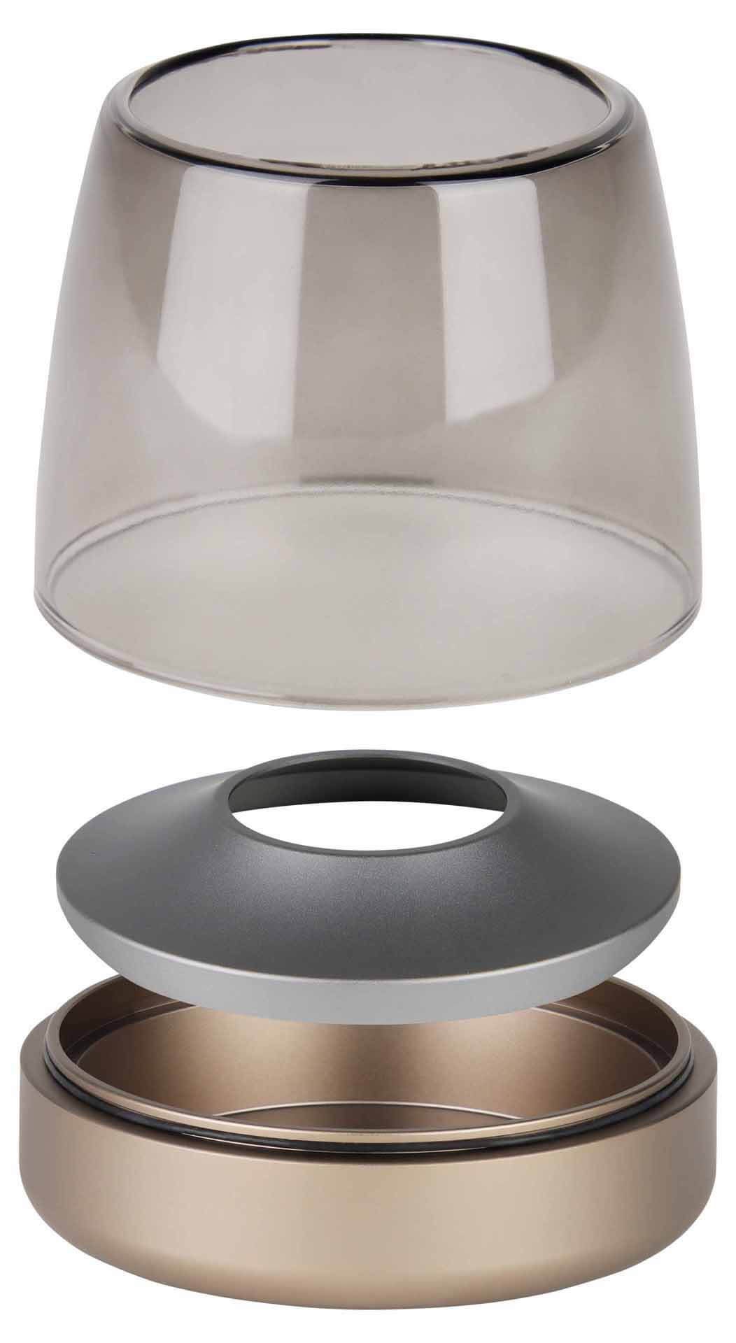 Das dänische Design der Glow 10 Kerzenhalter von Kooduu strahlt Eleganz und Geschmack aus und kann zu allen Einrichtungsstilen verwendet werden. Mit der wiederaufladbaren SHINE LED-Kerze (nicht im Lieferumfang enthalten) gestaltet sich ein gemütliches Ambiente ohne offenes Feuer. Die Brenndauer je Aufladung beträgt mehr als 100 Stunden. Der kleine Kerzenhalter kann daher an allen Orten sorglos benutzt werden. Das luxuriöse Aussehen erhält Glow10 durch ein gebürstetetes Aluminiumgehäuse in der Farbe sepia und einem handgefertigtem Glasaufsatz.