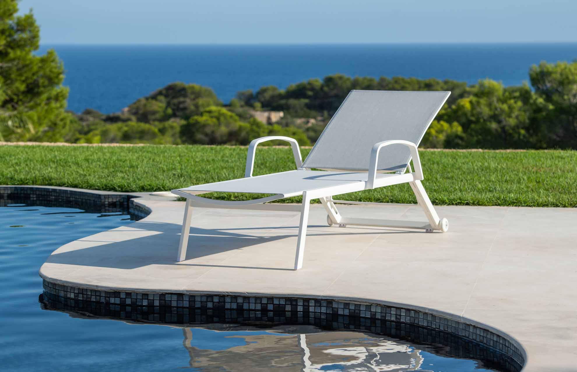 Hydra Sonnenliege, weiß/hellgrau, Armlehnen Aluminium