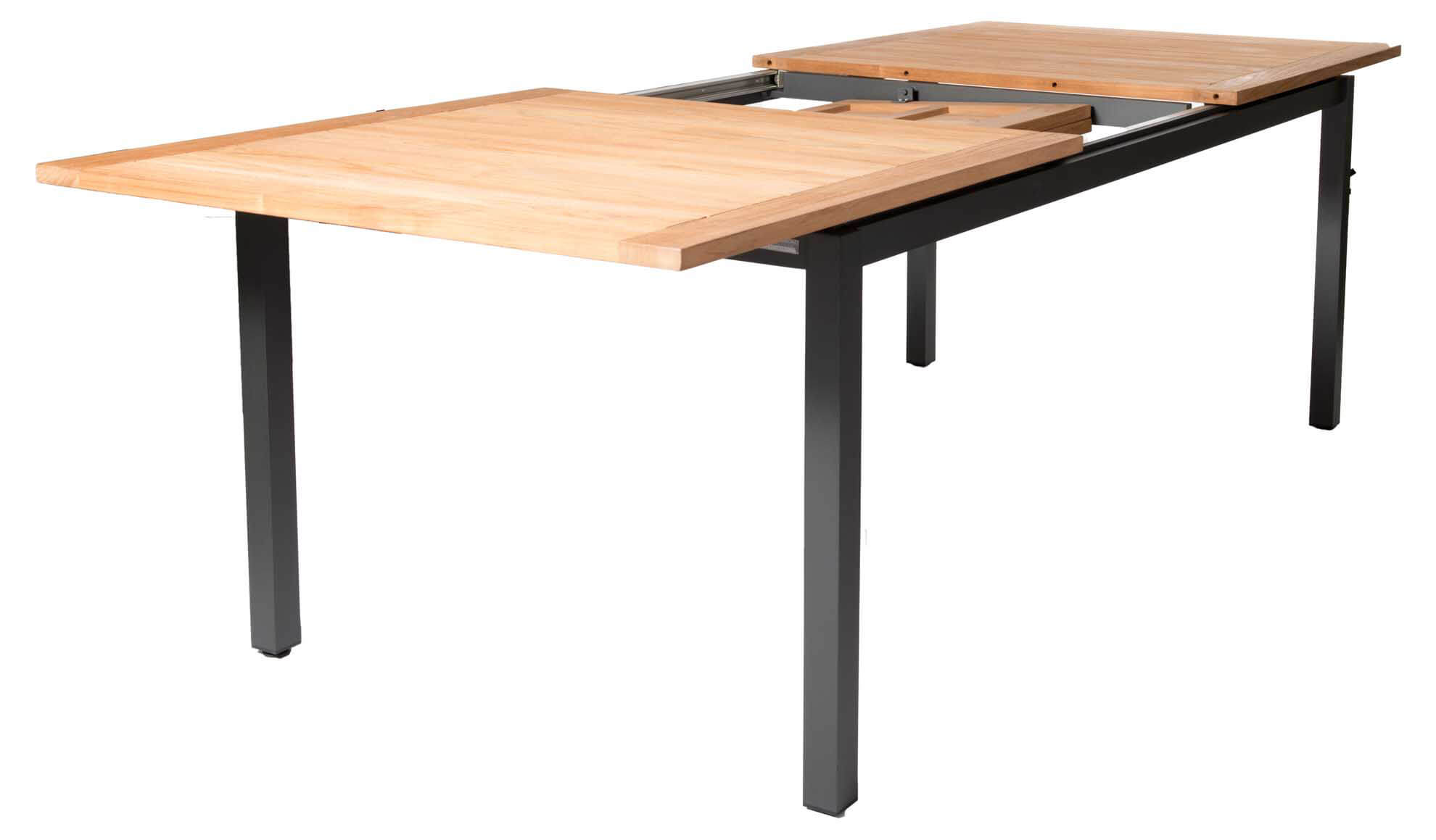 Produktname: Mallorca Ausziehtisch 150/207x90cm rechteckig, eisengrau/Teak