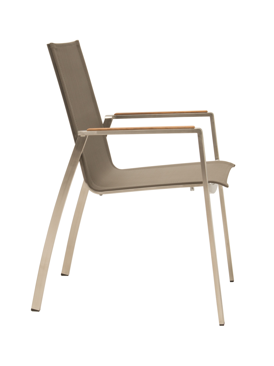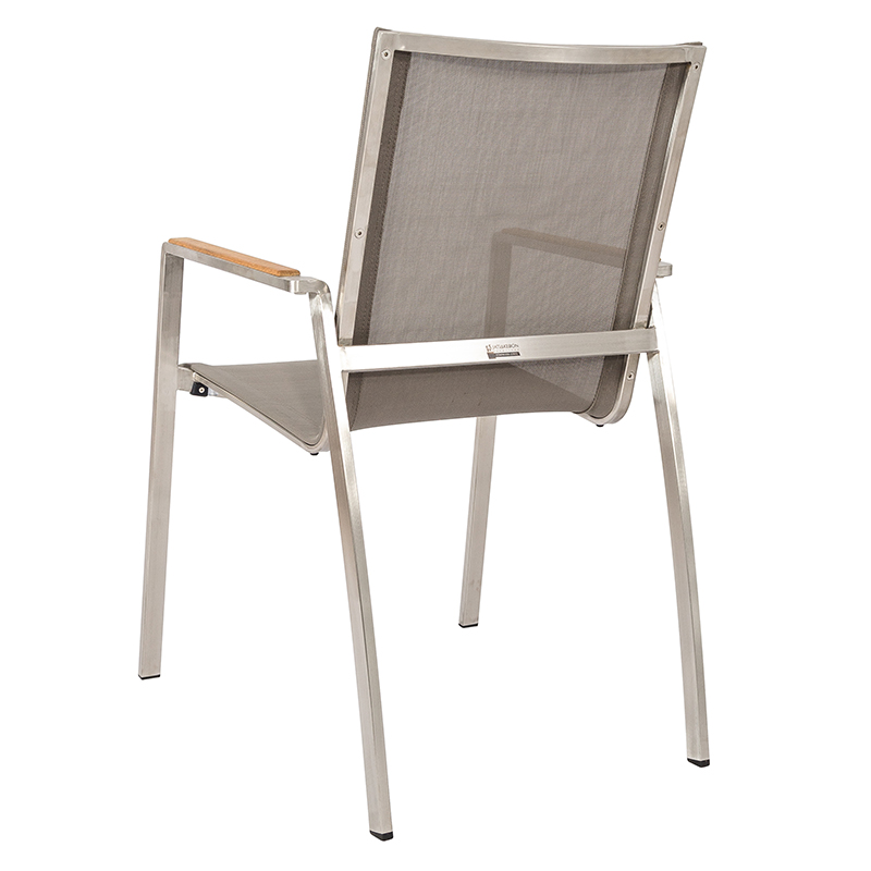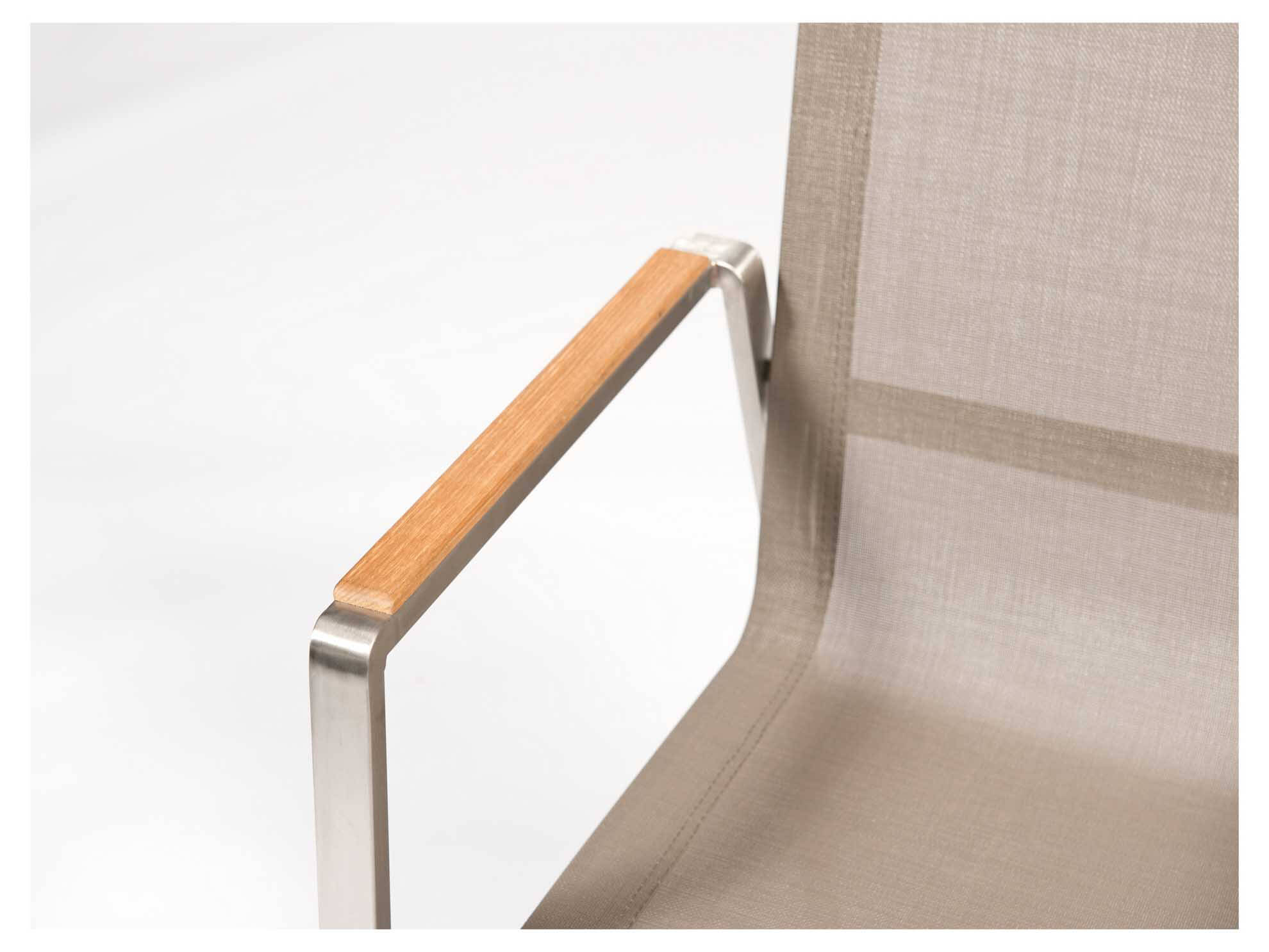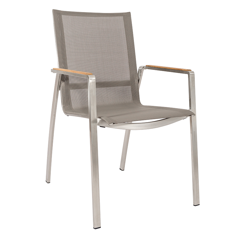 Monaco Stapelsessel Edelstahl/taupe, Armlehnen Teak