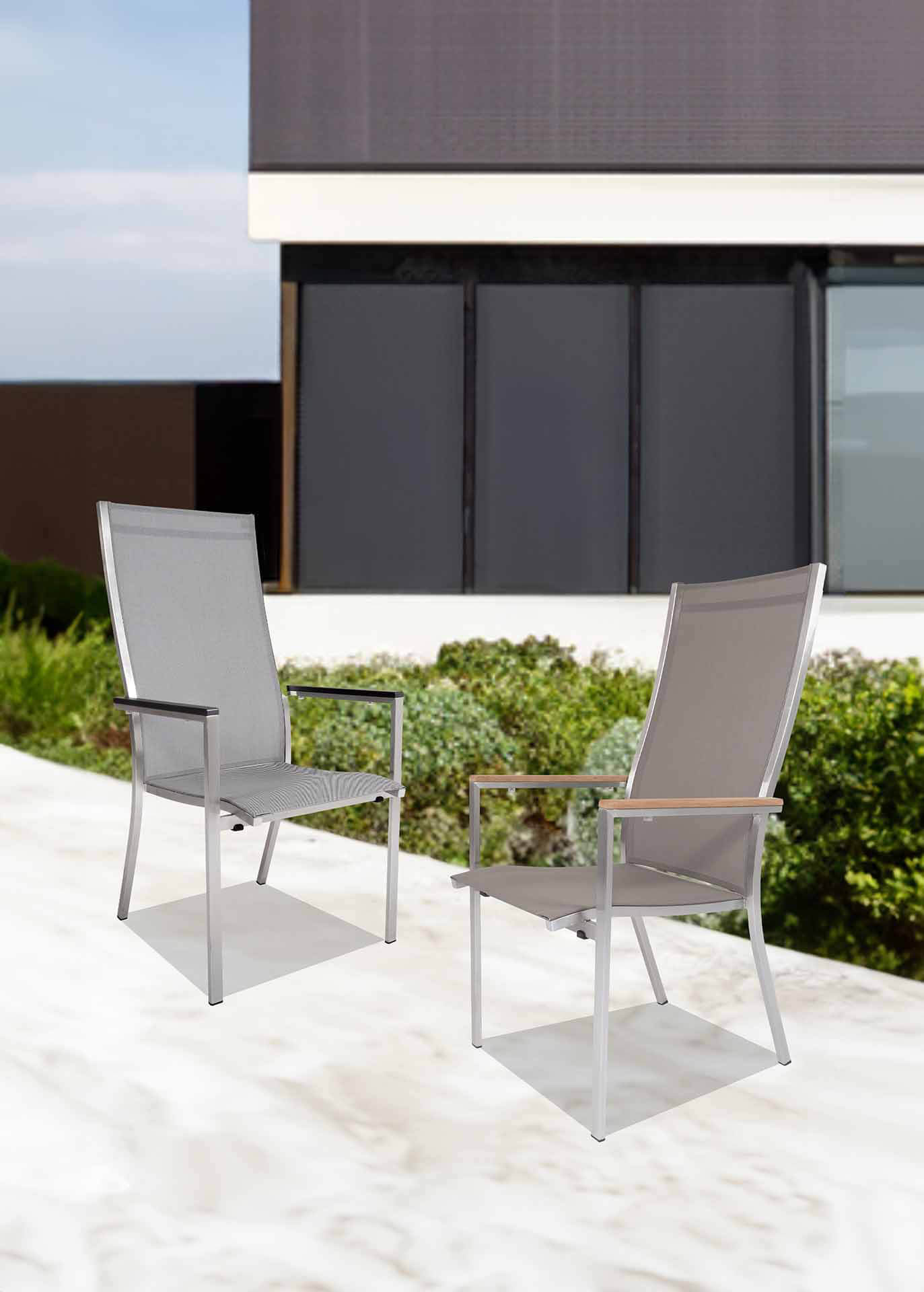 Monte Carlo Stapelsessel hoch, Edelstahl/taupe, Armlehnen Teak