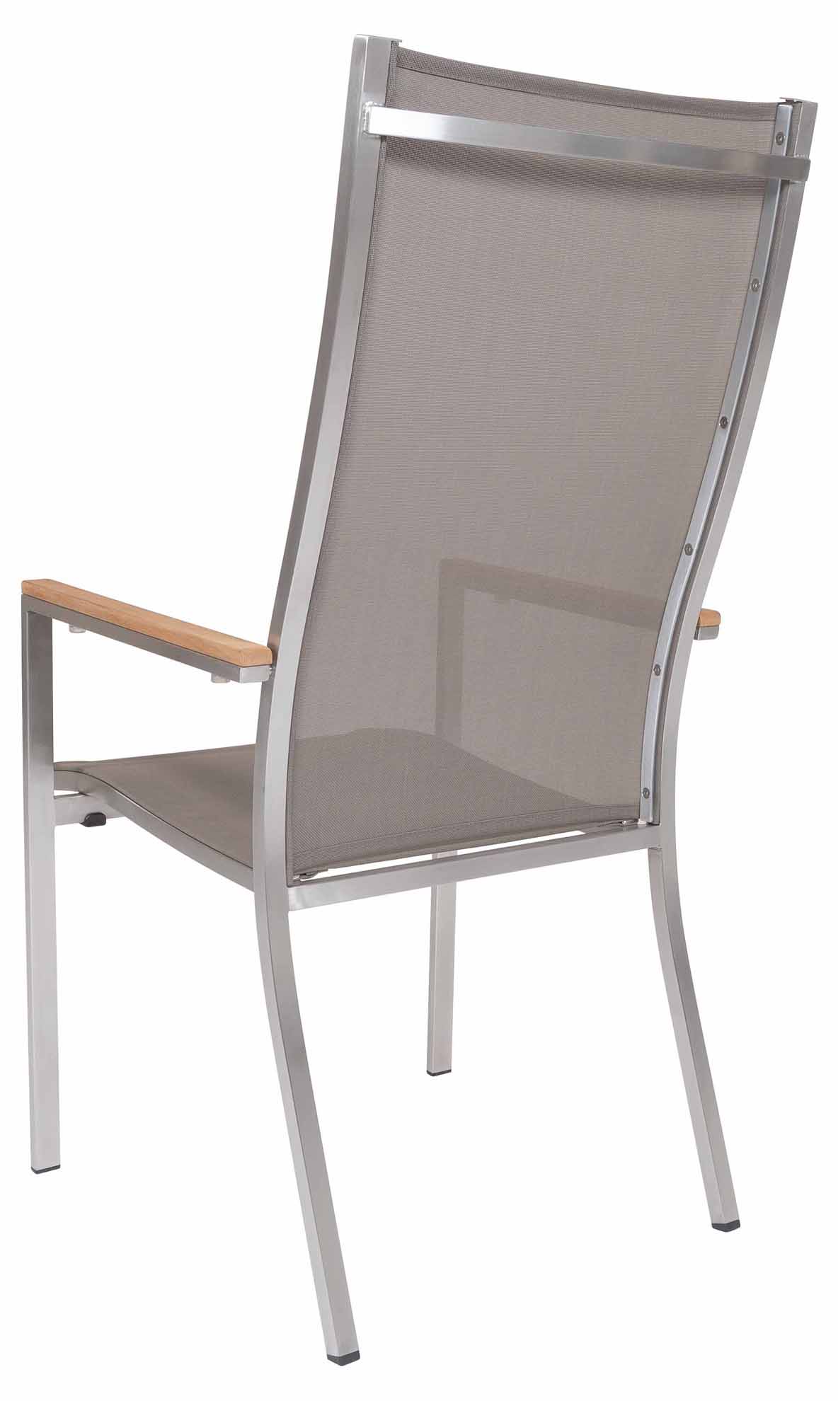 Produktname: Monte Carlo Stapelsessel hoch, Edelstahl/taupe, Armlehnen Teak