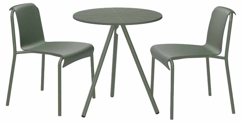 Das pulverbeschichtete Aluminiumgestell in olivegrün verleiht dem Tisch eine moderne Note und gewährleistet gleichzeitig Stabilität und Langlebigkeit.