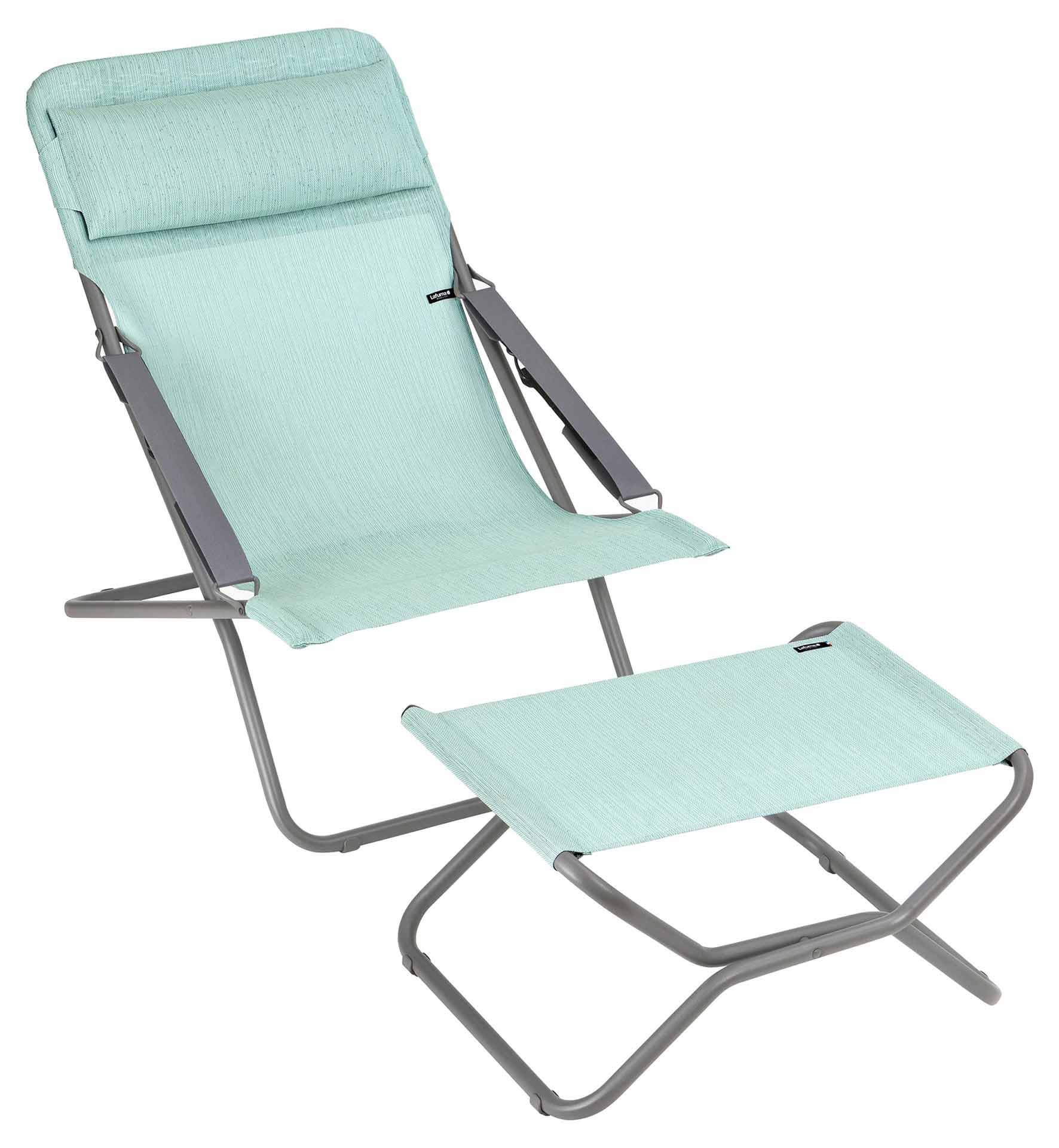 Der Next Hocker von Lafuma dient als Beinauflage und ist die ideale Ergänzung zu einem Relaxsessel oder einem Liegestuhl. Desweiteren ist der Hocker zusammenklappbar, leicht zu verstauen und transportabel. Die korrosionsbeständige, pulverbeschichtete Stahlkonstruktion in titane schützt gegen Witterungseinflüsse und Salzwasser. Der Stoffbezug aus Batyline® duo mistral trocknet besonders schnell und ist pflegeleicht, das atmungsaktive Material ist bequem und sorgt für optimalen Komfort.