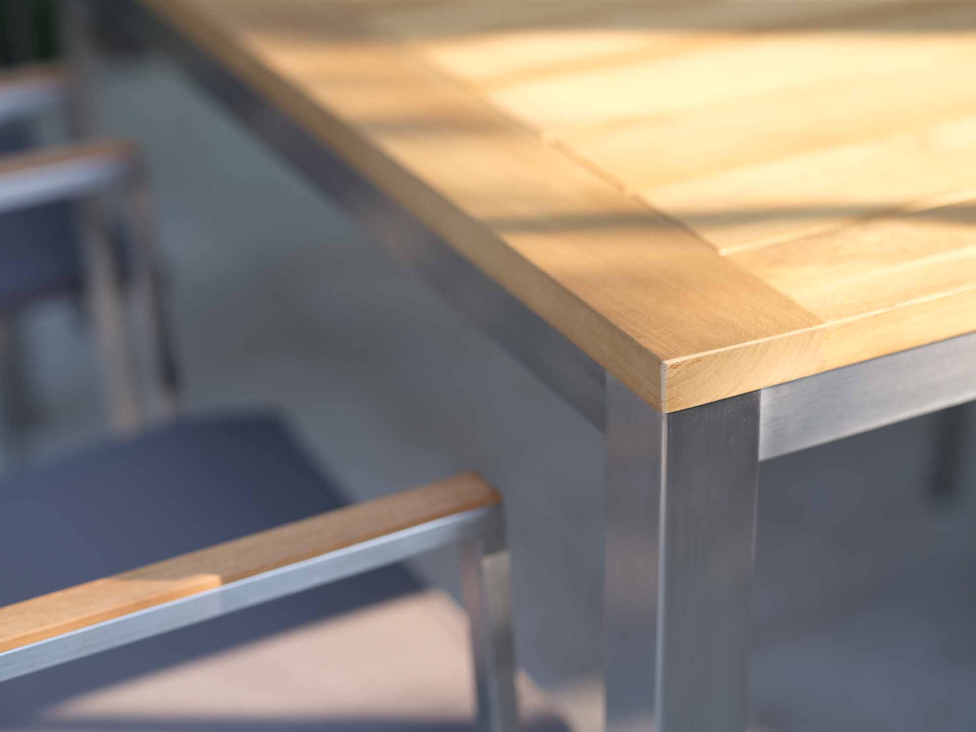 Gartenmöbel aus Edelstahl sind nicht nur wetterbeständig, sondern auch äußerst strapazierfähig. Das Material ist sehr stabil, deshalb können Edelstahl-Gartenmöbel mit viel kleineren Profilen hergestellt werden und wirken deutlich filigraner als andere Materialien. Die gebürstete Oberfläche verleiht dem Möbelstück eine exklusive Anmutung. Edelstahl ist unempfindlich gegen Schäden durch Anstoßen und Verkratzen, da die Oberfläche nicht lackiert ist. Kleine Beschädigungen können einfach mit einem metallfreien Reinigungsvlies bearbeitet werden. Die Edelstahl-Gartenmöbel in unserem Sortiment sind nicht für den Einsatz in Hallenbädern oder in Küstennähe am Meer geeignet!
