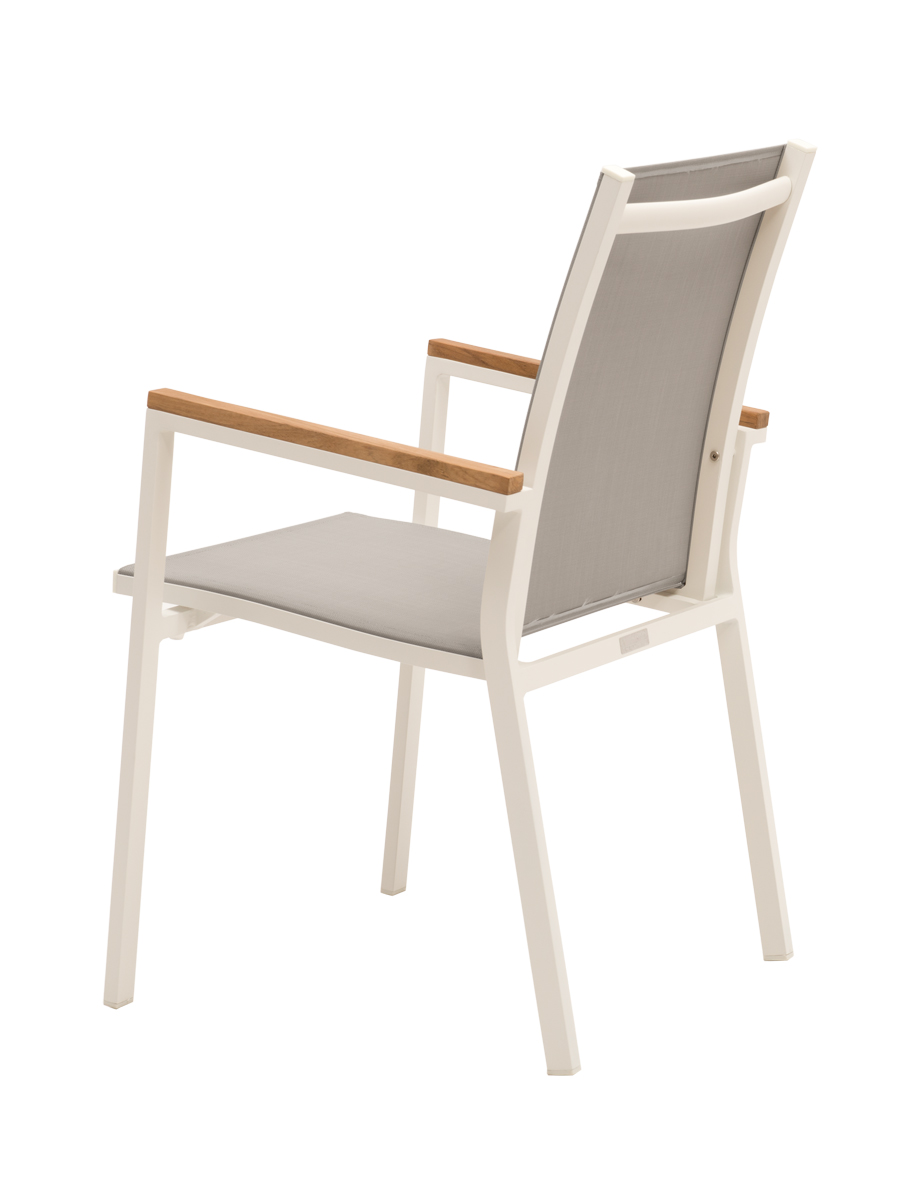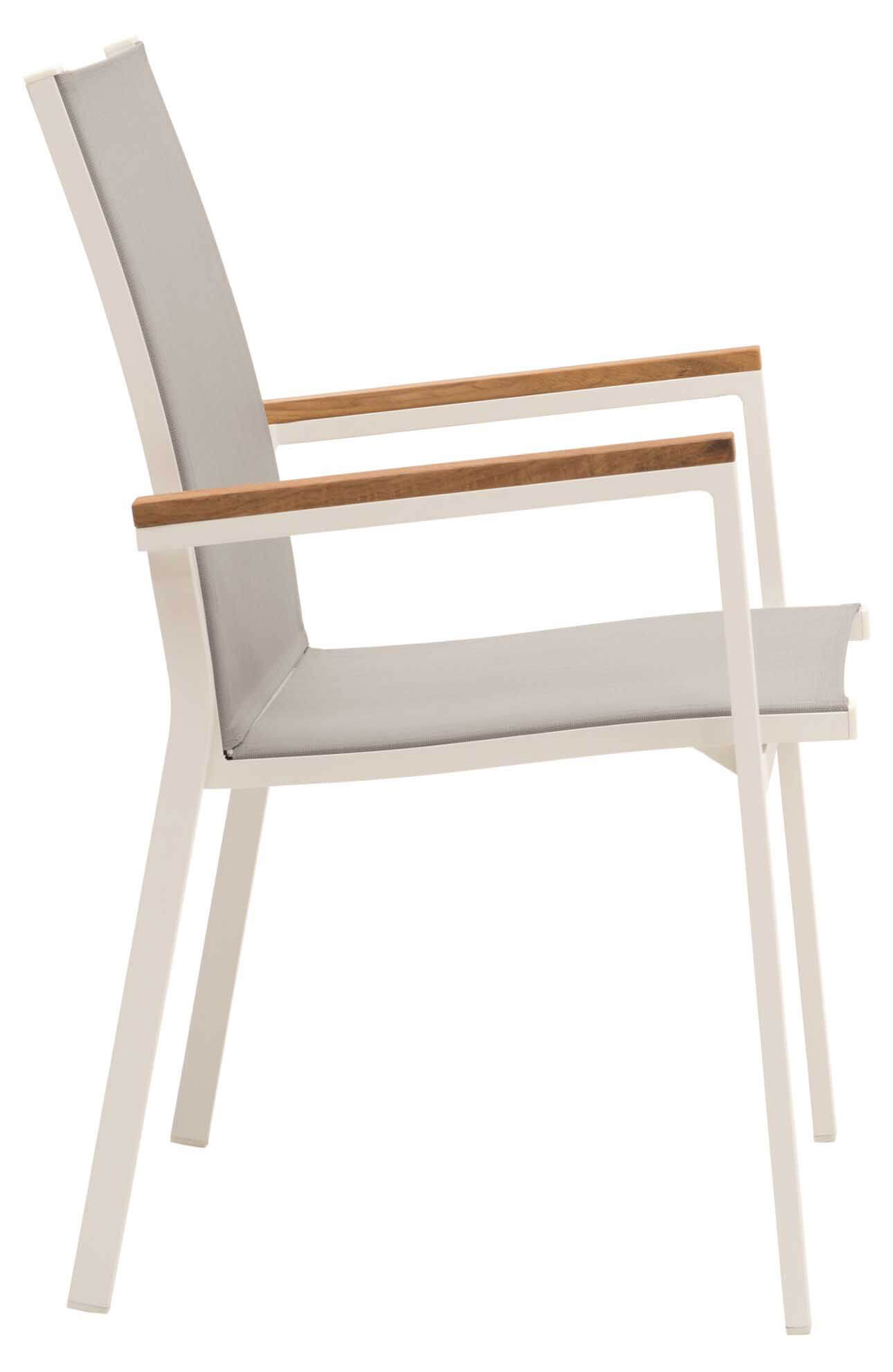 Produktname: Rome Stapelsessel weiß/hellgrau, Armlehnen Teak