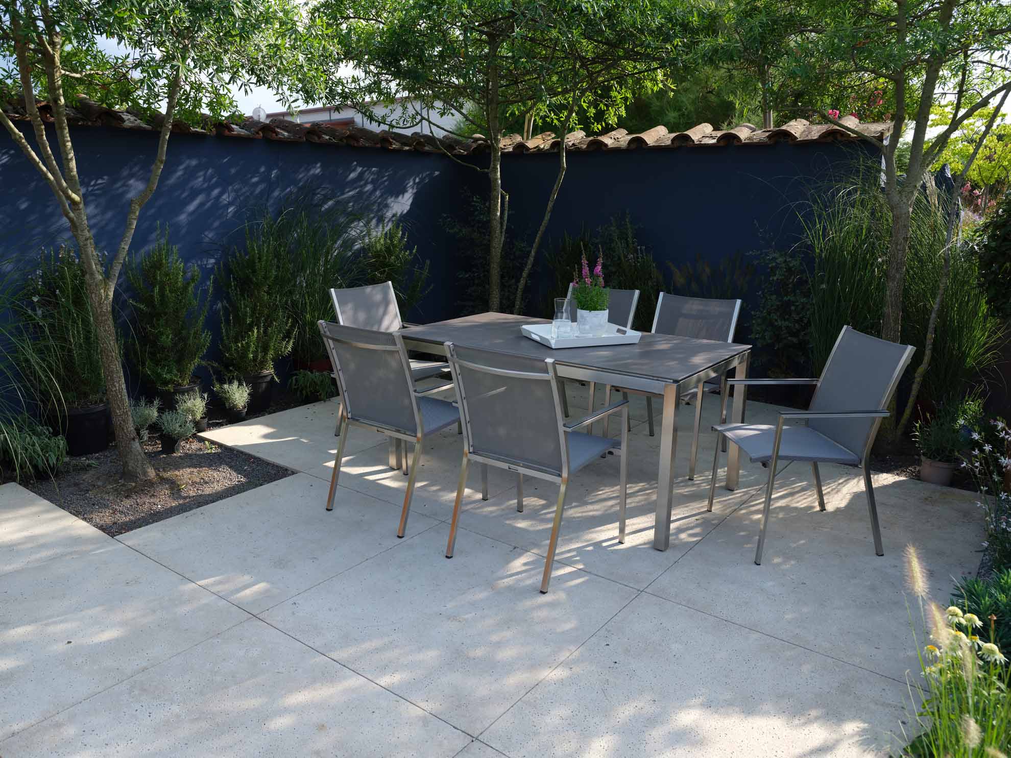 Gartenmöbel aus Aluminium sind geradezu ideal für den Einsatz im Freien geeignet. Das geringe Gewicht, die Wetterbeständigkeit, sowie die außerordentliche Langlebigkeit machen Aluminium zur 1. Wahl bei Gartenmöbeln aus Metall. Damit das Material nicht „ausblüht“ sind unsere Aluminium-Gartenmöbel mit hochwertigen Pulverbeschichtungen versehen. Viele Artikel sind in verschiedenen Farben erhältlich. Fast alle Aluminium-Gartenmöbel aus unserem Sortiment werden in aufwendiger Handarbeit gefertigt. Die Schweißnähte werden geschliffen und poliert, sodass Verbindungen anmuten als wären sie „aus einem Guss“.