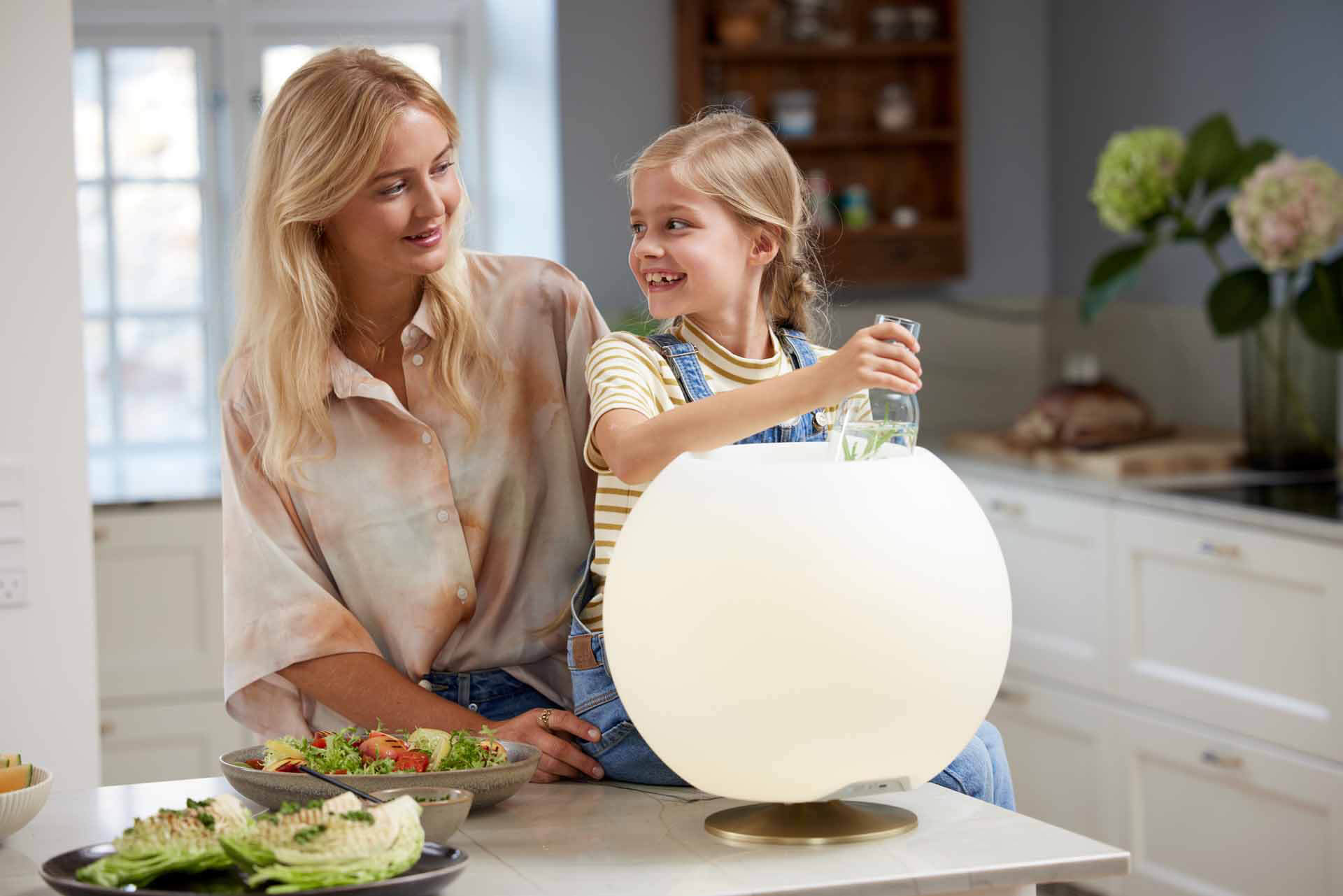 Die kugelförmige Gestalt des Kooduu Sphere sorgt für eine gleichmäßige Verteilung von warmem und dimmbarem Licht, das eine behagliche Atmosphäre schafft. Dank der Bright Sound Technology™ von Kooduu und dem minimalistischen Ansatz von Jacob Jensen Design erleben Sie zudem ausgewogenen Klang in bester Qualität.