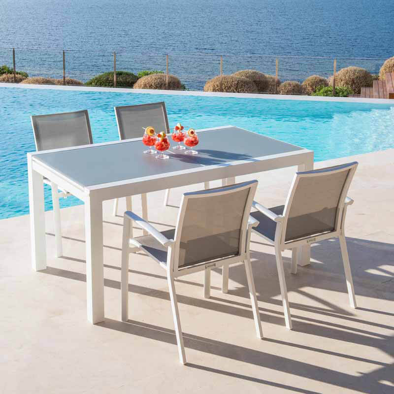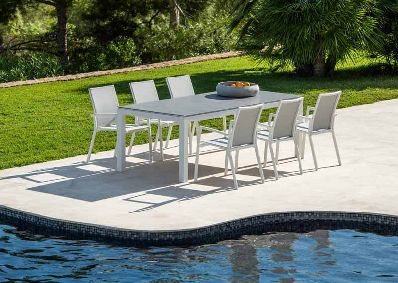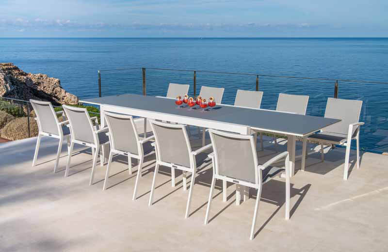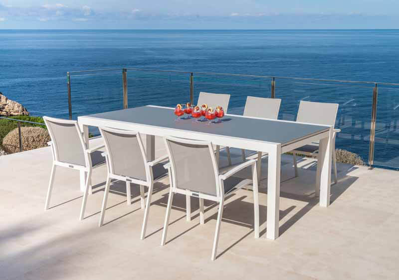 Gartenmöbel aus Aluminium sind geradezu ideal für den Einsatz im Freien geeignet. Das geringe Gewicht, die Wetterbeständigkeit, sowie die außerordentliche Langlebigkeit machen Aluminium zur 1. Wahl bei Gartenmöbeln aus Metall. Damit das Material nicht „ausblüht“ sind unsere Aluminium-Gartenmöbel mit hochwertigen Pulverbeschichtungen versehen. Viele Artikel sind in verschiedenen Farben erhältlich. Fast alle Aluminium-Gartenmöbel aus unserem Sortiment werden in aufwendiger Handarbeit gefertigt. Die Schweißnähte werden geschliffen und poliert, sodass Verbindungen anmuten als wären sie „aus einem Guss“.