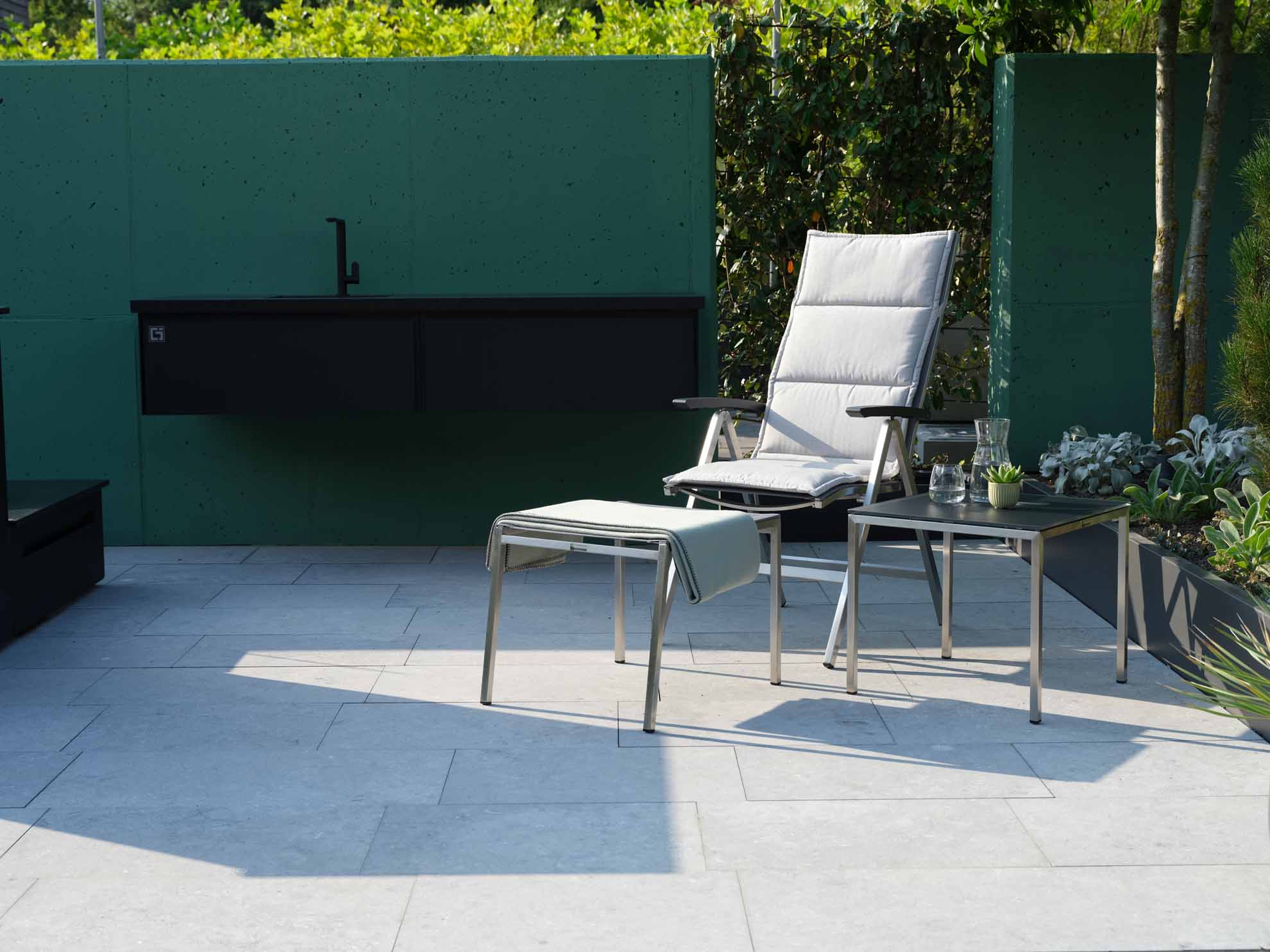 Der Varzo Verstellsessel von Jati & Kebon wird gefertigt aus rostfreiem Edelstahl mit Armlehnen aus Aluminium "eisengrau". Die Bespannung der Sitz- und Rückenfläche besteht aus witterungsbeständigem Jatex-Gewebe, daß speziell für den Außenbereich entwickelt wurde und mit der verstellbaren Rückenlehne finden Sie immer die bestmögliche Sitzposition. Der Stuhl ist zusammenklappbar und lässt sich daher einfach und platzsparend verstauen. Gestell: Edelstahl/matt Armlehnen: Aluminium/eisengrau Bespannung: Jatex/silbergrau