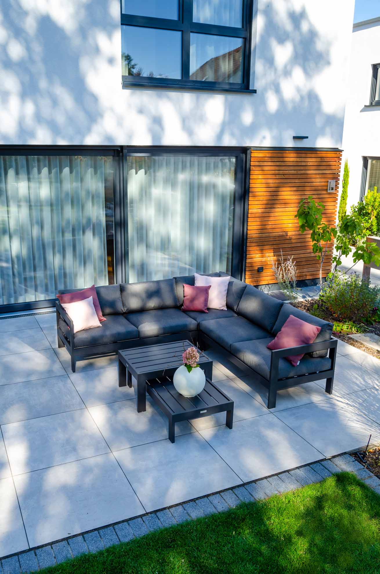 Der Vigo Lounge Modulsystem Seitenteil rechts von Jati & Kebon besteht aus einer schlanken Aluminiumkonstruktion. Die bewusst reduzierte Form auf das Wesentliche wirkt modern und stilvoll. Die Farbe „eisengrau“ wird durch eine strapazierfähige Pulverbeschichtung aufgetragen, die witterungsresistent und pflegeleicht ist. Die Breite dieses Modulsystems beträgt 154,5cm, die Tiefe 78,5cm. Die Gesamthöhe ist 61cm. Das Vigo Modulsystem kann mit anderen Elementen dieser Serie erweitert werden, daher können Sie die Größe Ihrer Vigo-Loungegarnitur je nach Platzbedarf selbst bestimmen. Maßgefertigte Sitzkissen in unterschiedlichen Farben finden Sie unserem Zubehörprogramm.