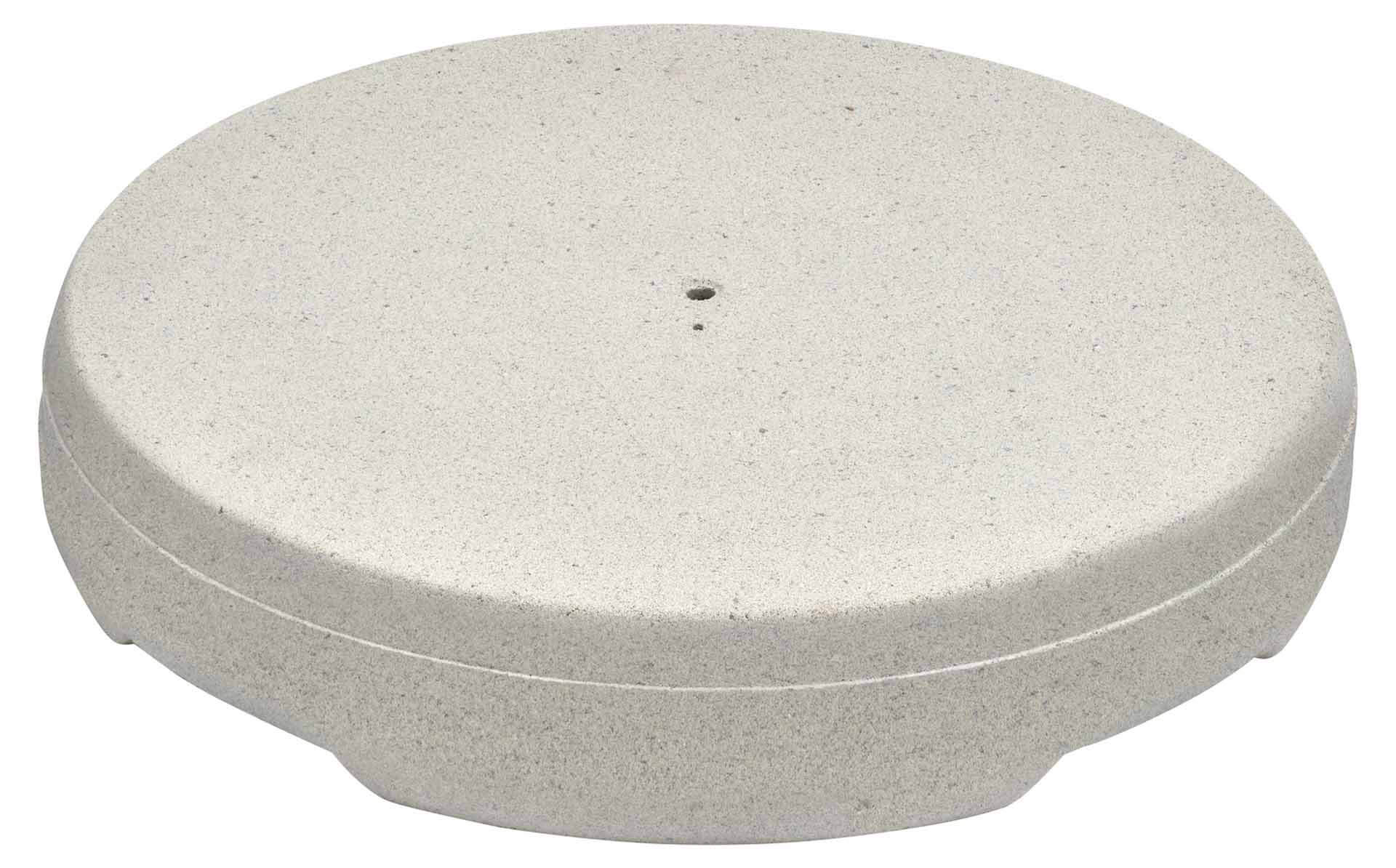 Betonsockel Z rund, für Sonnenschirme von <b>Glatz</b>. für kleine und mittlere Marktschirme. Vier Griffmulden, Gewicht <b>55kg</b>, Durchmesser 60cm, Höhe 11cm. Ohne Standrohr.</p>