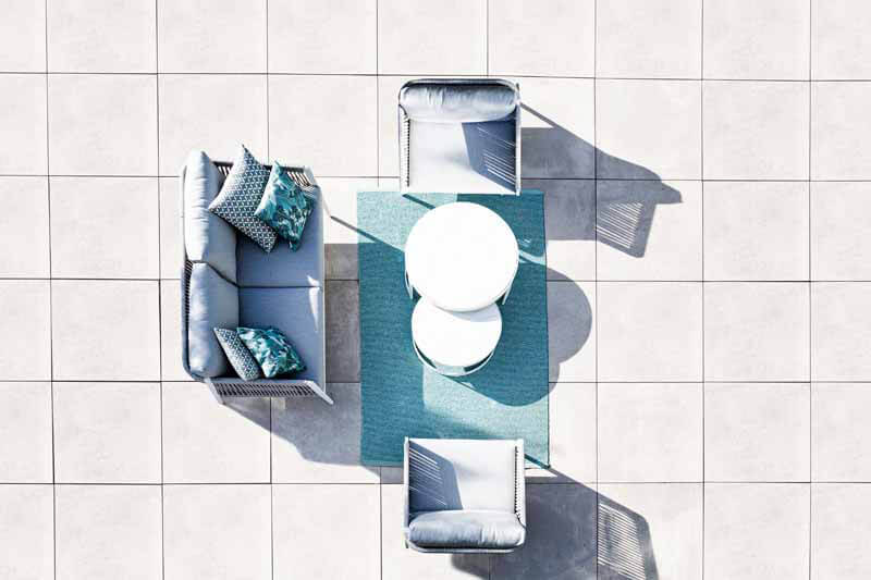 Der Burford Kaffeetisch / Loungetisch von Jati & Kebon hat einen Durchmesser von 77cm und eine H öhe von 35cm. Das Gestell und die Tischplatte bestehen aus grauem pulverbeschichtetem Aluminium. Der Burford Couchtisch von Jati & Kebon ist die funktionale und stilvolle Ergänzung für jeden Außenbereich. Er ist in zwei verschiedenen Größen erhältlich, wobei die kleinere Größe unter das größere Modell passt.