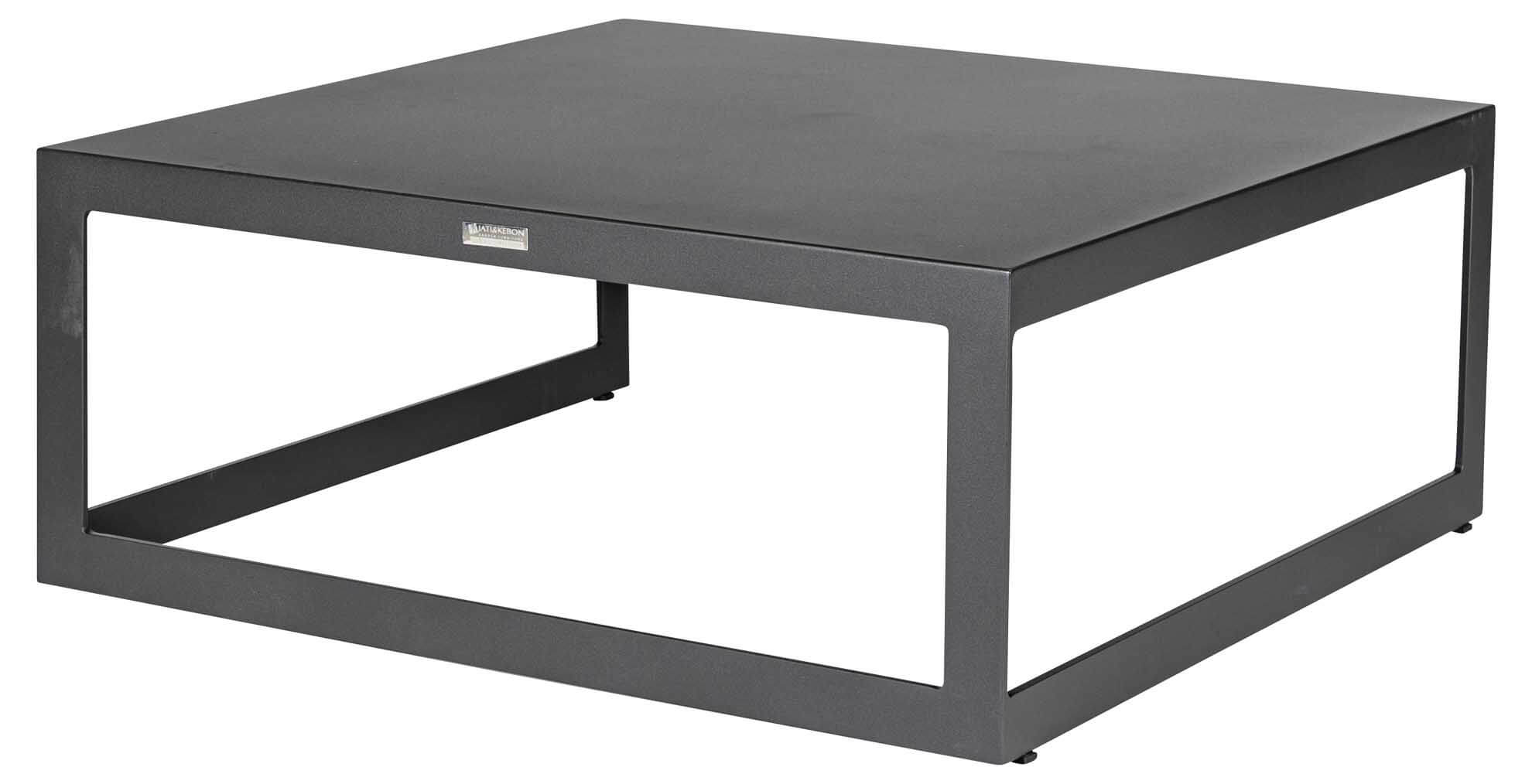 Der Burford Kaffeetisch von Jati & Kebon ist quadratisch 90x90cm mit einer Höhe von 37cm. Das Gestell und die Tischplatte besteht aus pulverbeschichtetem Aluminium in der Farbe eisengrau matt. Die Tischplatte ist bei diesem Artikel bereits im Lieferumfang enthalten.