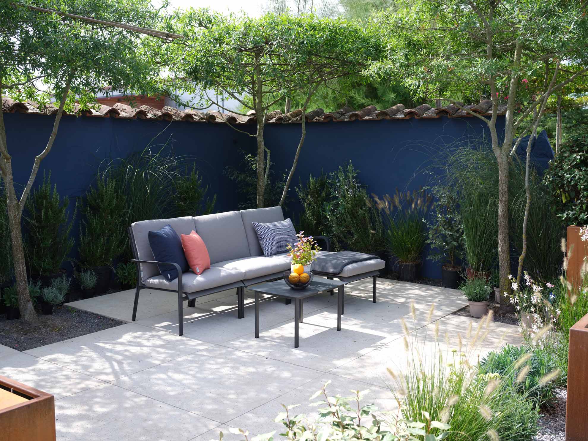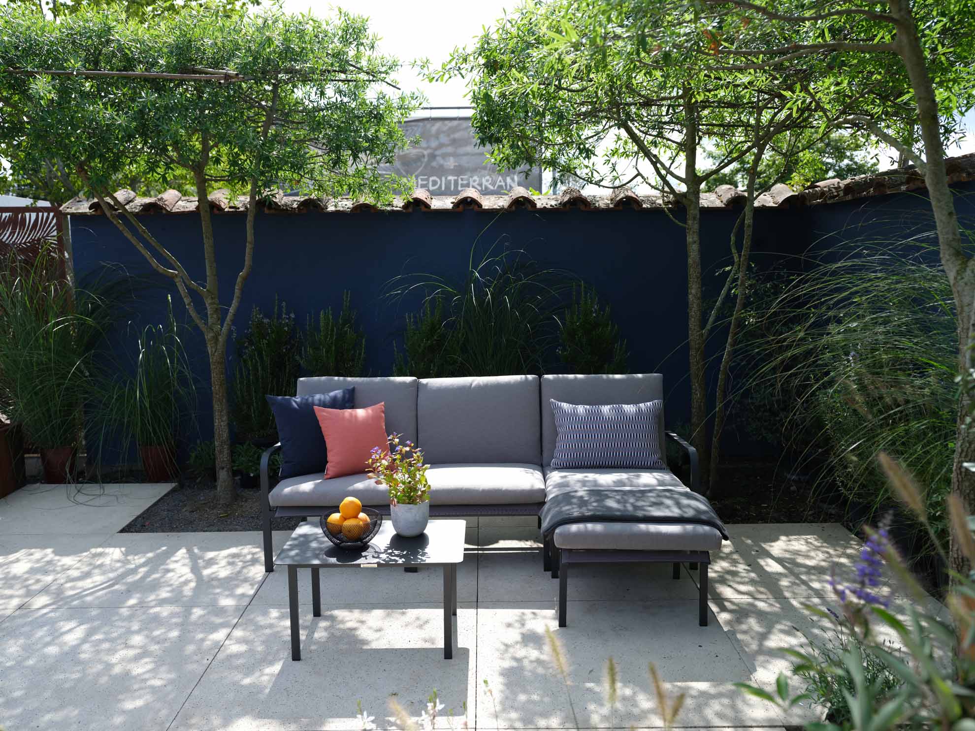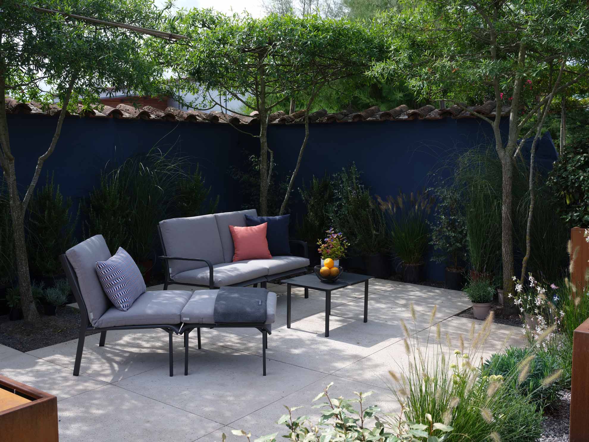 Dieses leichte Dransy Lounge-Set von Jati&Kebon besteht aus folgenden Teilen: 1 x Seitenteil rechts 1 x Seitenteil links 1 x Mittelteil 1 x Hocker Das Aluminium Gestell ist pulverbeschichtet in der Farbe eisengrau, die Bespannung der Sitz- und Rückenfläche ist silbergrau. Durch das robuste Jatex-Gewebe und die hochwertige Oberfläche des Aluminiumgestells ist das Dransy Lounge Modul perfekt für den Outdoor Bereich geeignet und trotzt allen Wetterbedingungen.