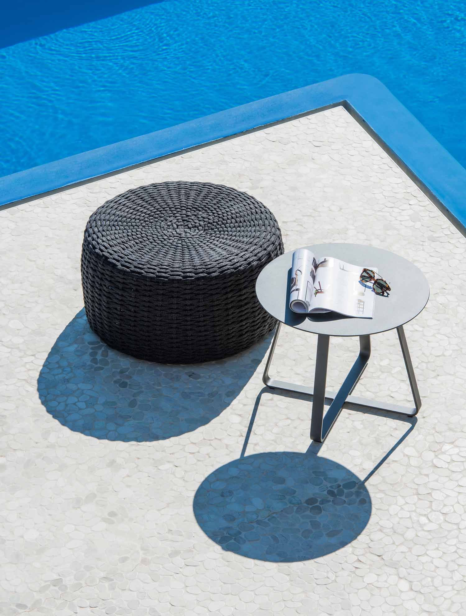 Der runder Beistelltisch Elko von Jati & Kebon hat einen Durchmesser von 45 cm und eine Höhe von 45cm. Das Gestell und die Tischplatte sind aus massivem pulverbeschichtetem Aluminium, in der Farbe Eisengrau matt. Elko-Tische passen sowohl einzeln als handliche Tische neben einen Sessel oder ein Sofa, als auch in einer Kombination aus drei verschiedenen Größen oder einer gemischten Farbgestaltung in schwarz + weiß.