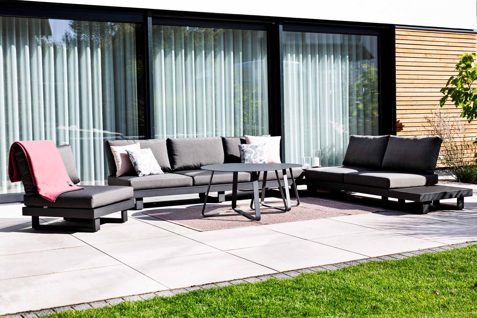 Das Fano XS Lounge System von Jati & Kebon steht für klare Formen und die ultimative Reduktion hin zum Wesentlichen. Sitzfläche, Rückenlehnen und enorm bequeme Kissen sind das Ergebnis dieser Komposition. Durch die verschiedenen Fano XS Module, bestehend aus Dreier - Zweier - und Einzelsitz sind individuelle Größen realisierbar. Beistelltische im gleichen Design komplettieren die Fano XS Lounge und bieten die nötige Stellfläche für Kaffee, Zeitschriften oder andere Dinge. Fano XS Lounge 3-Sitzer Basismodul Als Liege, Sofa oder Ecksofa nutzbar Gestell pulverbeschichtetes Aluminium, "eisengrau" Rückenlehnen und Kissen-Set sind im Zubehör bestellbar