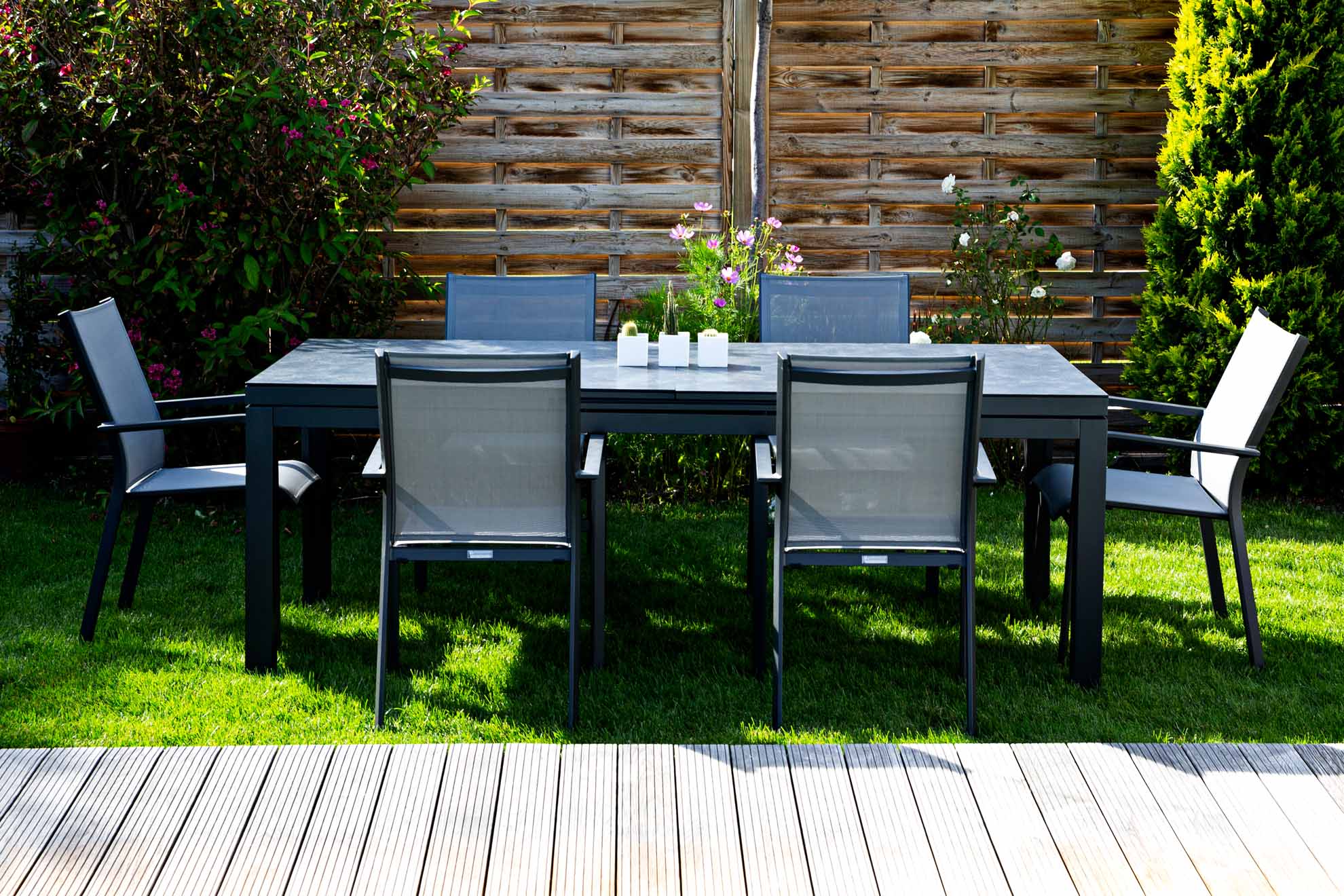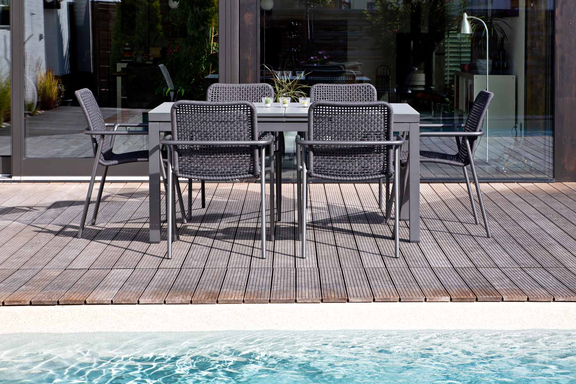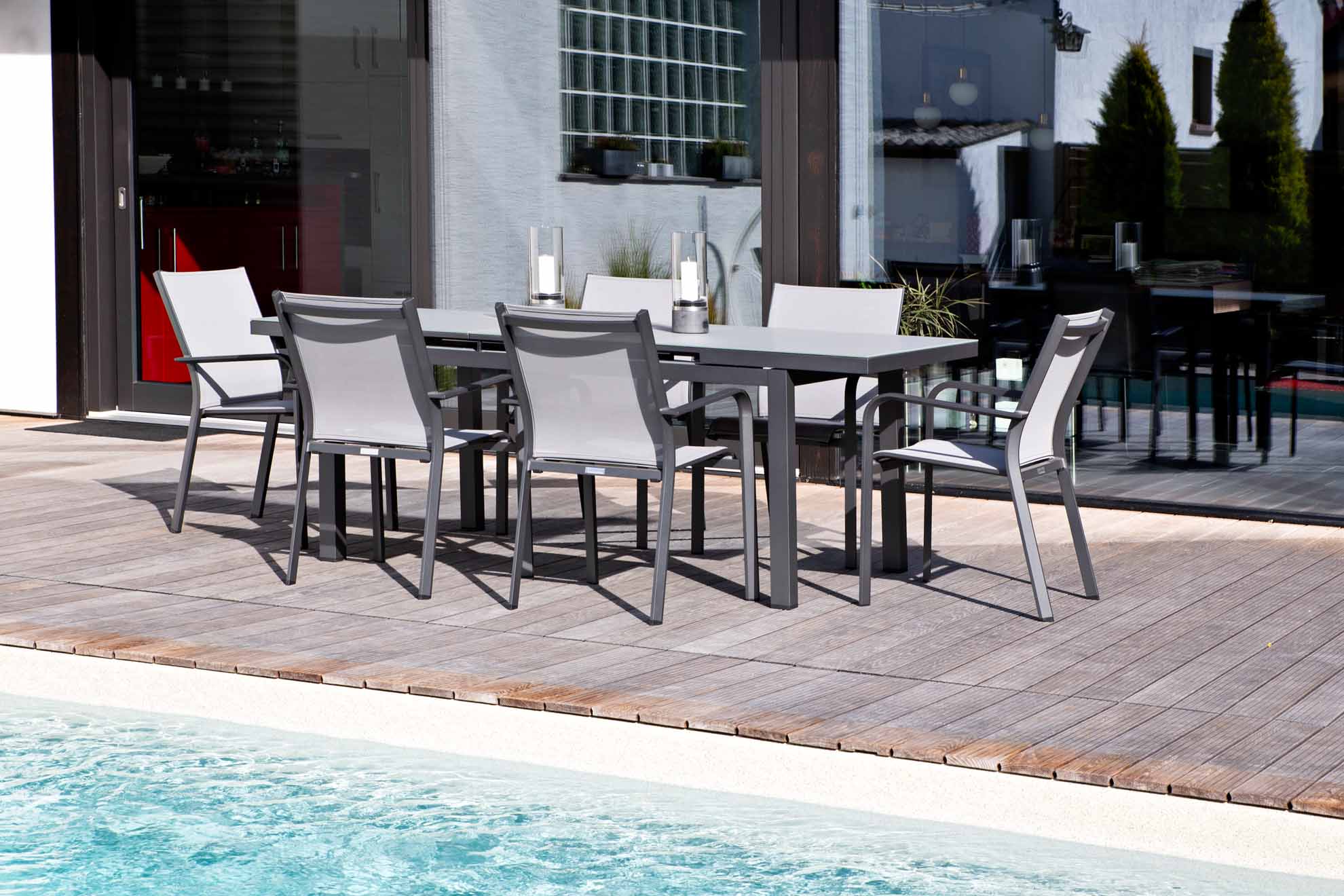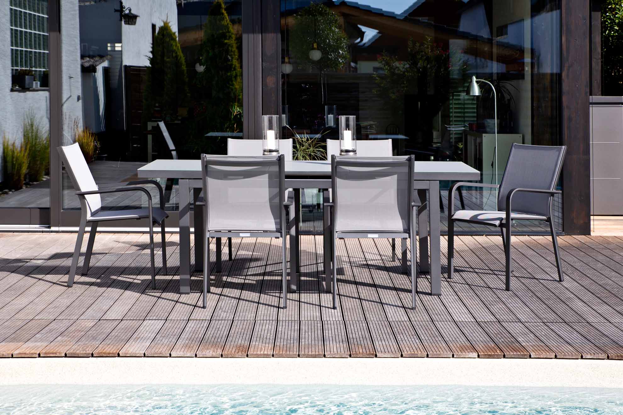 Gartenmöbel aus Aluminium sind geradezu ideal für den Einsatz im Freien geeignet. Das geringe Gewicht, die Wetterbeständigkeit, sowie die außerordentliche Langlebigkeit machen Aluminium zur 1. Wahl bei Gartenmöbeln aus Metall. Damit das Material nicht „ausblüht“ sind unsere Aluminium-Gartenmöbel mit hochwertigen Pulverbeschichtungen versehen. Viele Artikel sind in verschiedenen Farben erhältlich. Fast alle Aluminium-Gartenmöbel aus unserem Sortiment werden in aufwendiger Handarbeit gefertigt. Die Schweißnähte werden geschliffen und poliert, sodass Verbindungen anmuten als wären sie „aus einem Guss“.