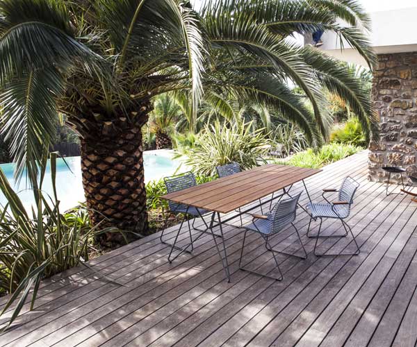 CLICK ist eine Kollektion von Outdoor-Möbeln aus intelligent gestalteten Kunststoff-Lamellen in Kombination mit pulverbeschichtetem Metall und schönen Bambusteilen. Die Komponenten sind sorgfältig ausgesucht, um den Lamellen genau die richtige Festigkeit und Elastizität zu geben und einen ausgezeichneten Komfort auch ohne Kissen oder Polster zu bieten. Das CLICK-Konzept bietet eine Vielzahl von Farboptionen. Die Lamellen sind in vielen verschiedenen Farben erhältlich und können an- und abgeklickt werden, um das Aussehen des Stuhls durch einfaches Wechseln - oder Mischen - der verschiedenen Lamellenfarben zu verändern. Der dänische Designer Henrik Pedersen hat viel Mühe in die Formgebung der Stühle investiert, damit die Lamellen der Struktur der Wirbelsäule folgen. Die CLICK-Kollektion besteht aus Esstühlen, Liegestühlen, Schaukelstuhl, Loungesesseln und einer Fußstütze.