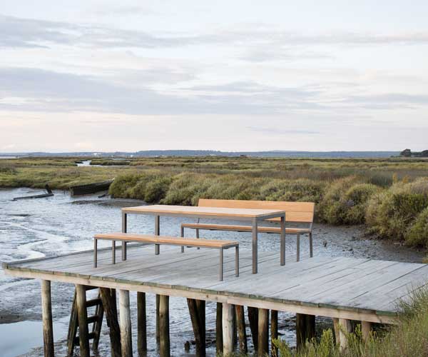Die Serie Salerno besteht aus verschieden großen Tischen und Bänken. Salerno wird aus robustem Aluminium und massivem Teakholz gefertigt. Die Serie ist zurückhaltend und doch präsent und wird so schnell zum Mittelpunkt der Terrasse oder des Gartens. Die verarbeiteten Materialien sind stabil, pflegeleicht und lassen einen ganzjährigen Einsatz im Freien zu.