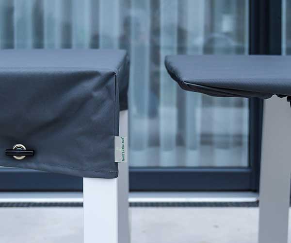 - Überprüfen Sie regelmäßig, ob sich unter der Schutzhülle Kondenswasser gebildet hat. Wenn ja, lüften Sie die Möbel und die Hülle gründlich.