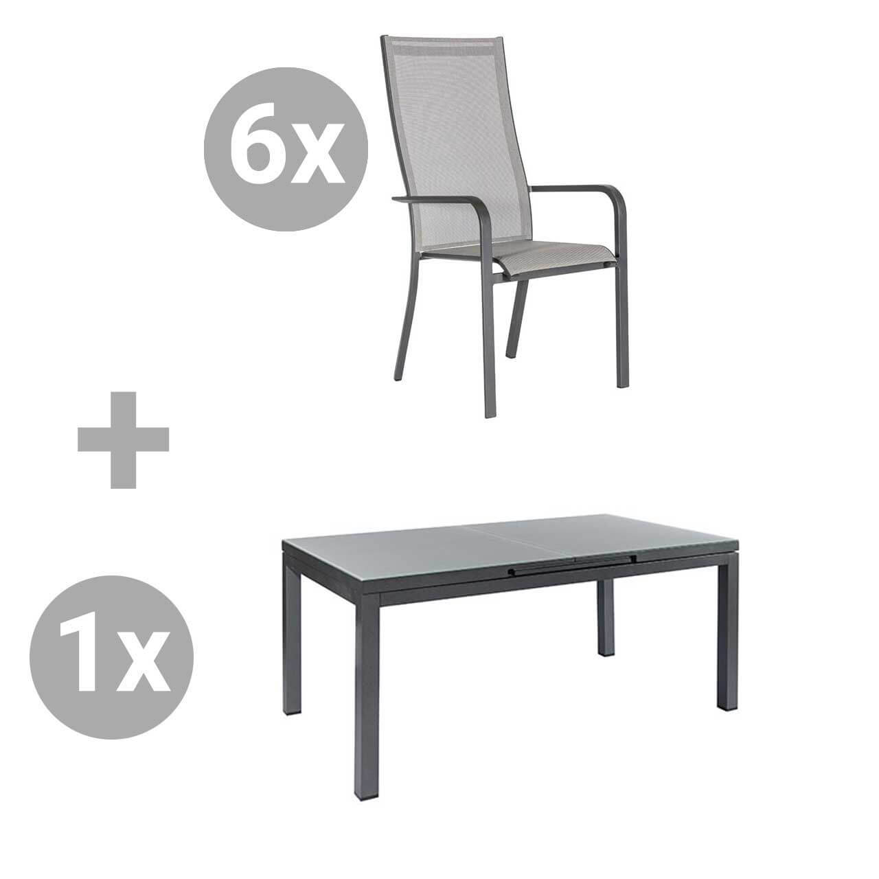 Produktinformationen "Set Gabon 160/210x90cm grau/Glas hellgrau + 6 Dransy Stapelsessel hoch"