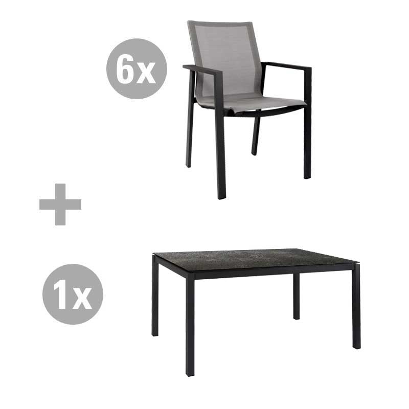 Set Lugo 160x90cm grau/HPL granit dunkelgrau + 6 Beja Stapelsessel