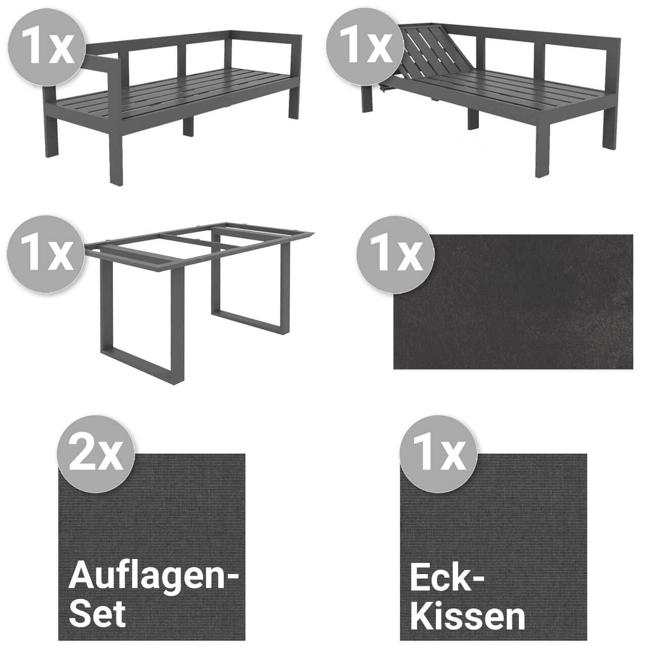 Produktinformationen "Set Vigo Casual Dining rechts, grau/Kissen Agora® panama grafito"