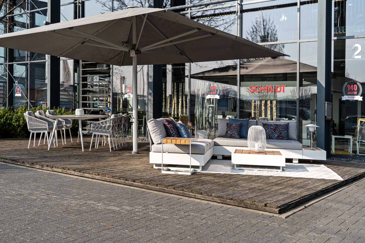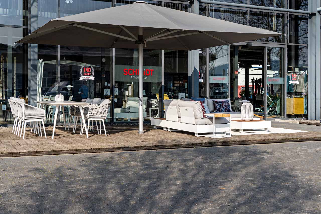 In den vergangenen Jahrzehnten hat sich unser Unternehmen kontinuierlich auf Gartenmöbel und Sonnenschirme spezialisiert, was sich deutlich im beachtlichen Erfolg von Schmidt Ambiente widerspiegelt. Dieser Erfolg zeigt sich heute in unserem stolzen Netzwerk von Filialen sowie einem exklusiven Gartenmöbel-Outlet, in denen wir mit Leidenschaft und Fachkompetenz Gartenmöbel und Sonnenschirme von höchster Qualität anbieten.