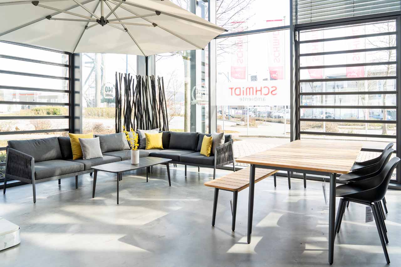 bei Schmidt Ambiente in Hirschberg an der Bergstraße – Ihrem Lieblingsort für alles rund um stilvolles Wohnen im Freien! Unsere Ausstellung ist ein Paradies für Gartenliebhaber und alle, die ihre Außenbereiche in stilvolle Rückzugsorte verwandeln möchten.