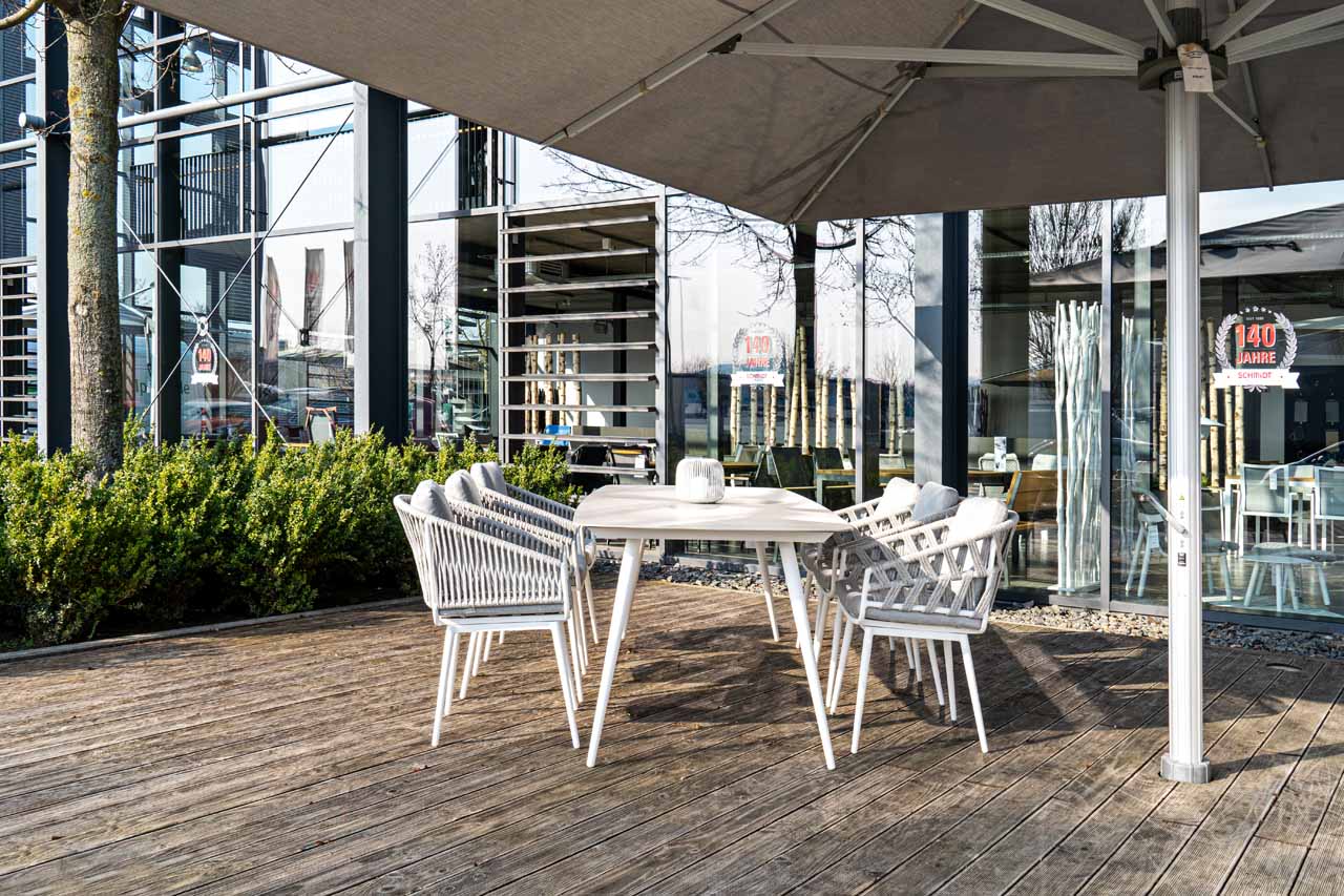 Wir laden Sie herzlich ein, die Welt der hochwertigen Gartenmöbel und stilvollen Sonnenschirme bei Schmidt Ambiente zu entdecken. Lassen Sie sich von unserer Leidenschaft für ästhetisches und funktionales Outdoor-Design inspirieren und verwandeln Sie Ihren Außenbereich in eine persönliche Wohlfühloase. Wir freuen uns darauf, Sie in unserer Filiale in Hirschberg begrüßen zu dürfen und Ihnen dabei zu helfen, Ihre Garten- und Terrassenträume zu verwirklichen.